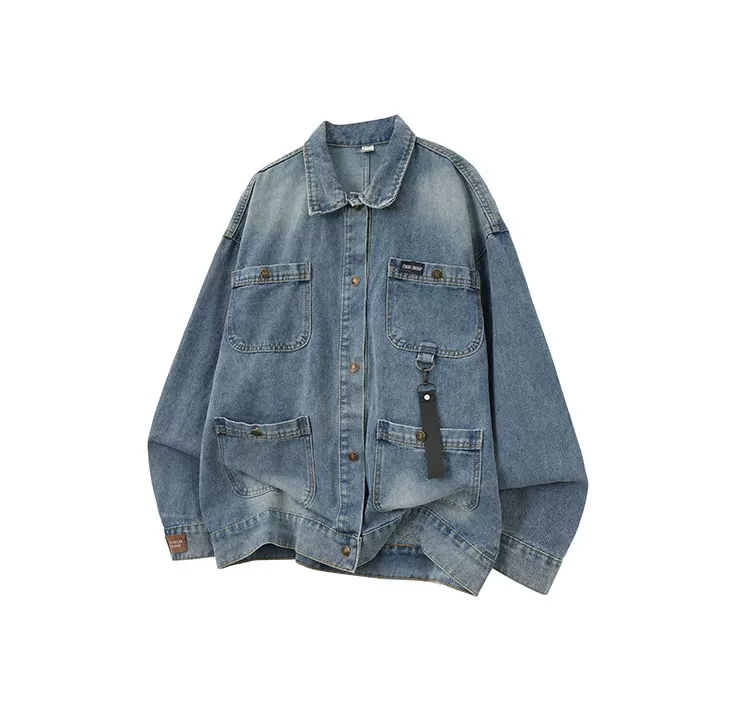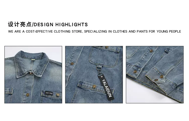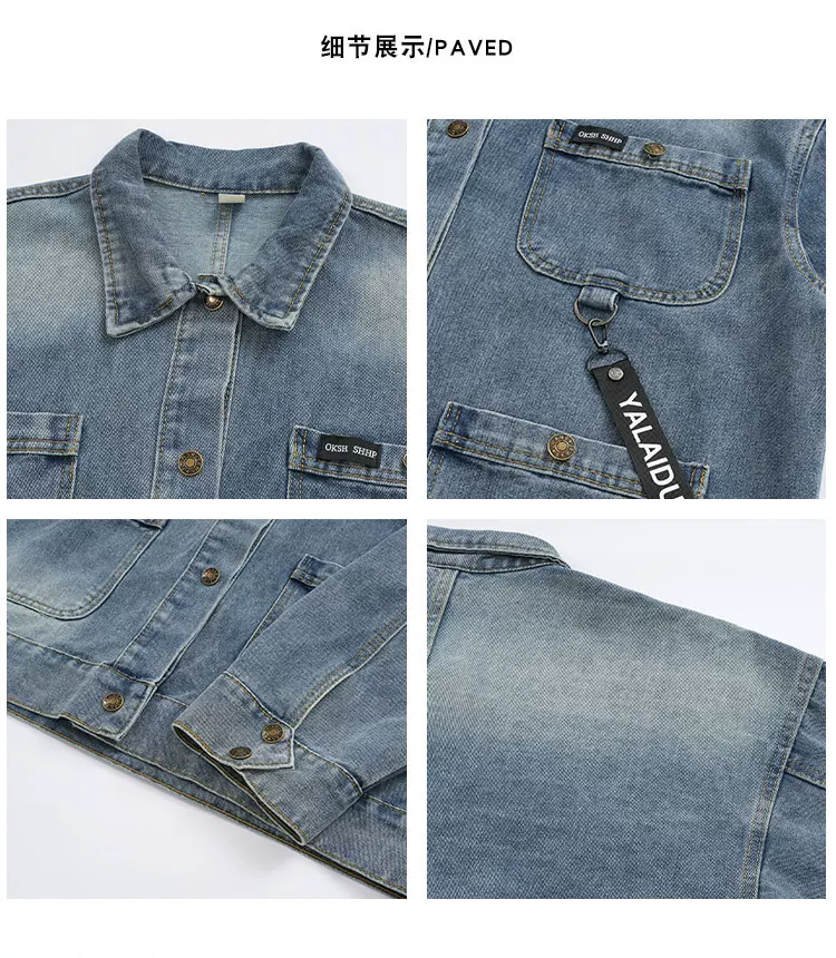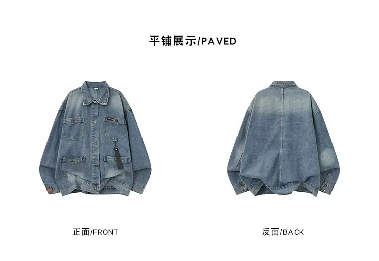 - Áo khoác denim nhiều túi cho nam, mùa xuân thu, dáng rộng, cổ bẻ, phong cách công sở, thiết kế thời thượng kiểu Mỹ.