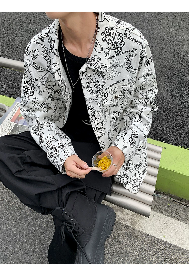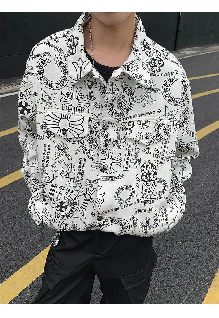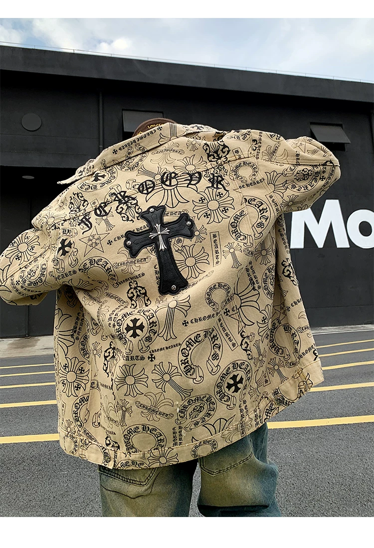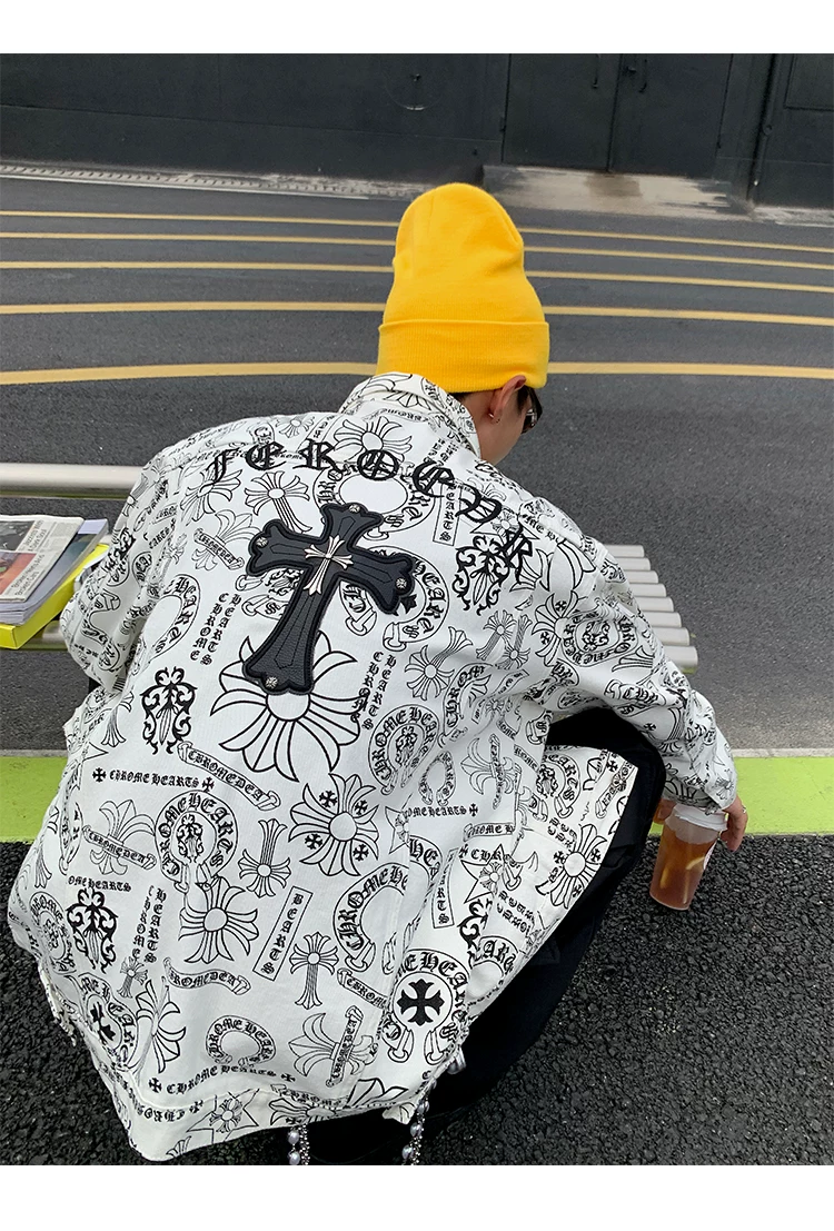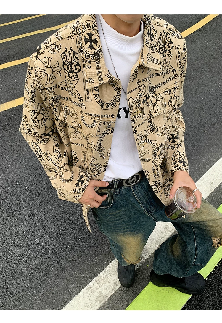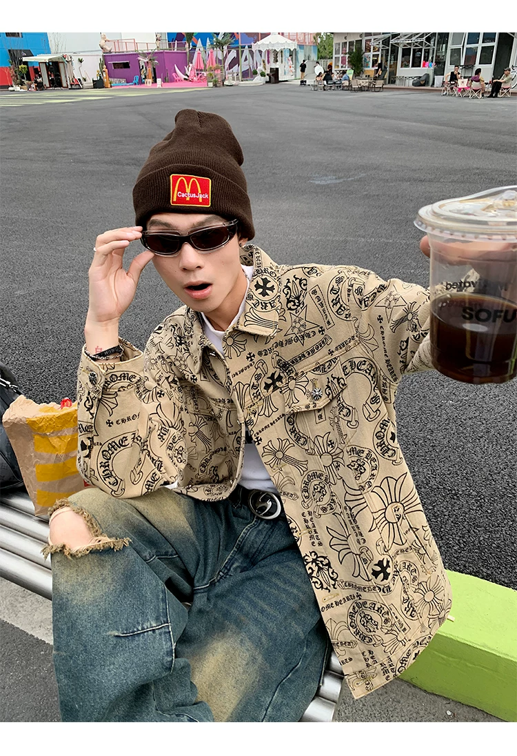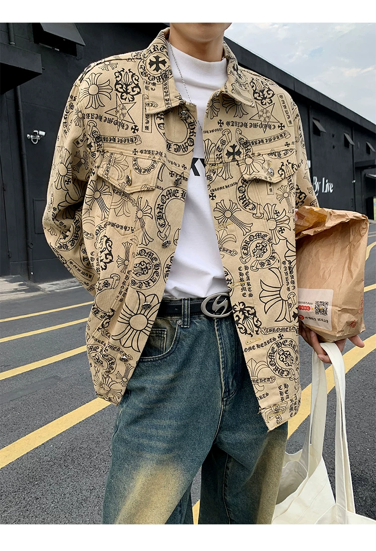 Áo khoác denim thêu họa tiết graffiti dành cho nam và nữ, áo kiểu dáng độc đáo, áo khoác phong cách Mỹ cổ điển hợp thời trang cho mùa xuân và mùa thu.