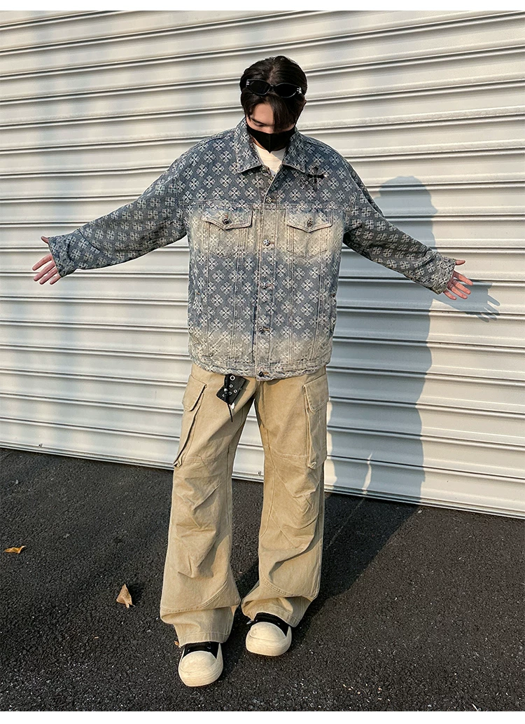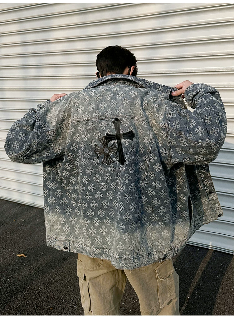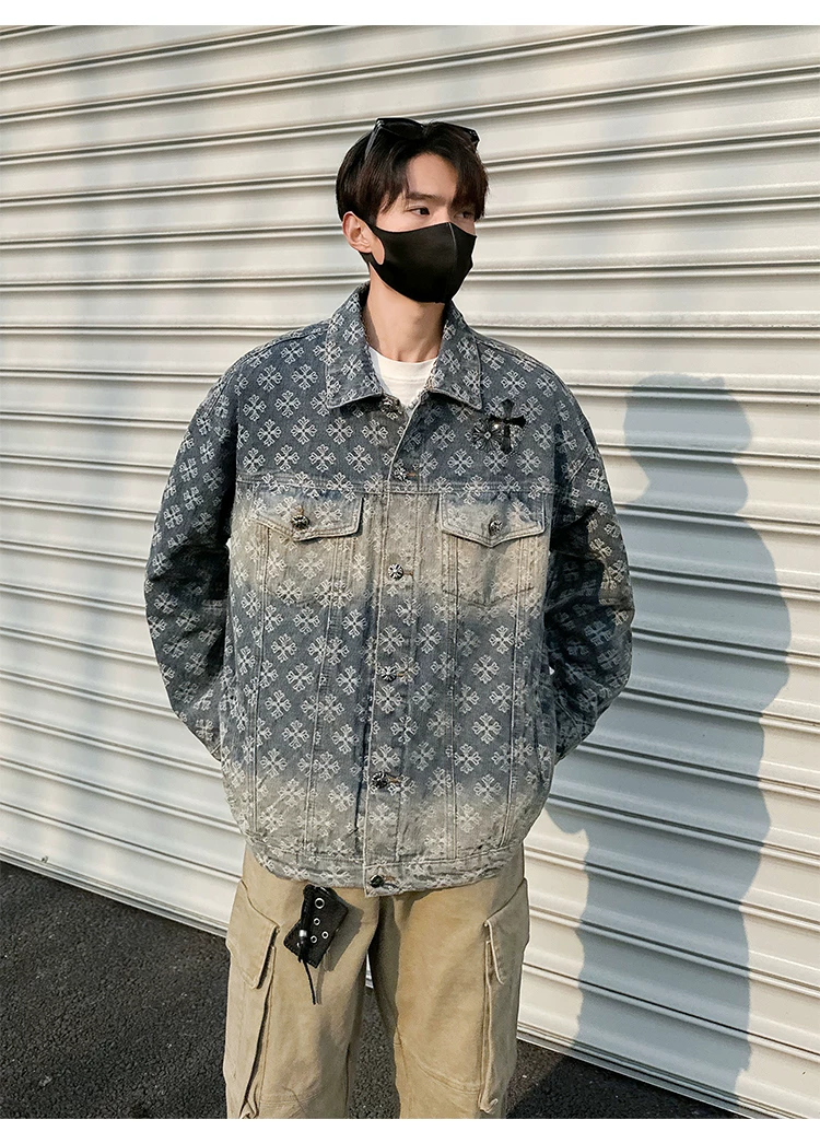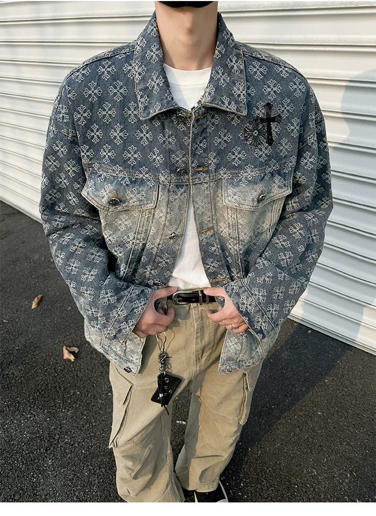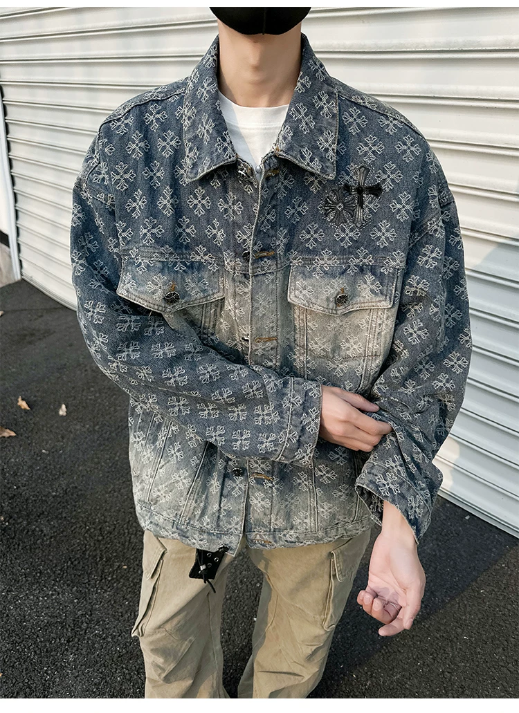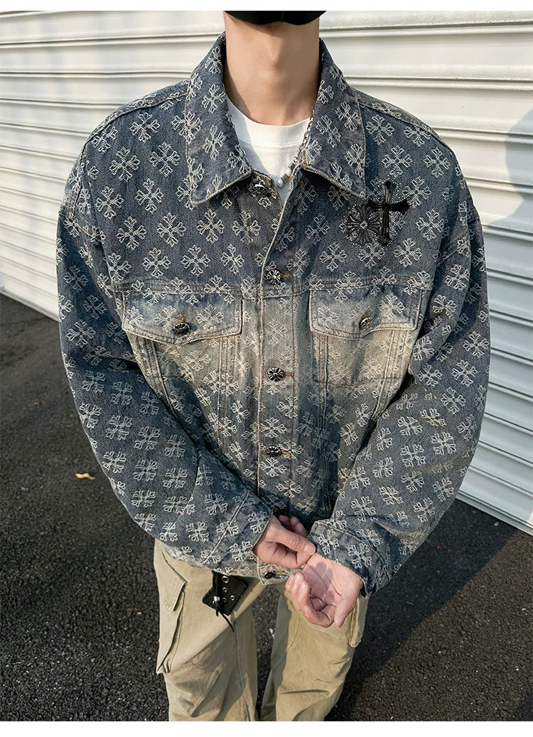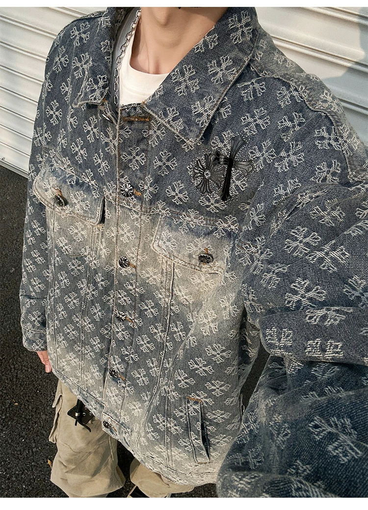 Áo khoác denim thêu Jacquard dành cho nam, phong cách retro Mỹ thời thượng mùa xuân thu, áo khoác công sở rộng rãi, thoáng mát.