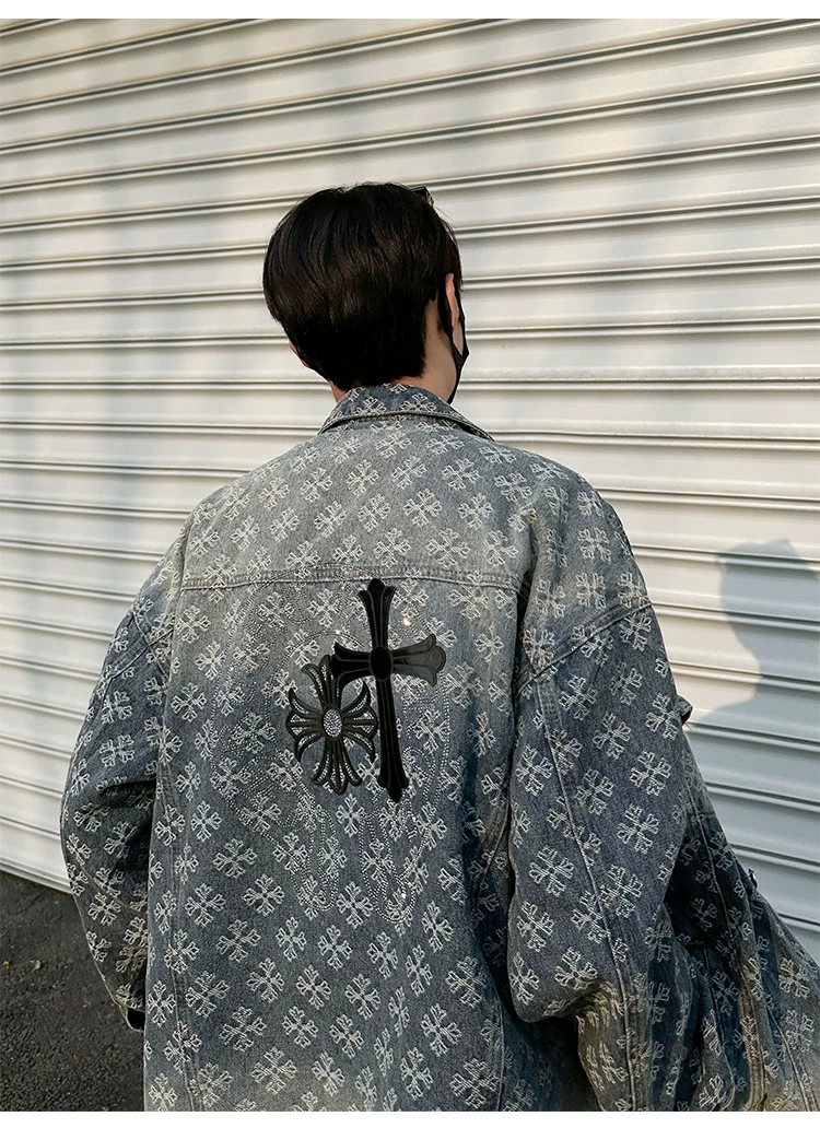 - Áo khoác denim thêu Jacquard dành cho nam, phong cách retro Mỹ thời thượng mùa xuân thu, áo khoác công sở rộng rãi, thoáng mát.