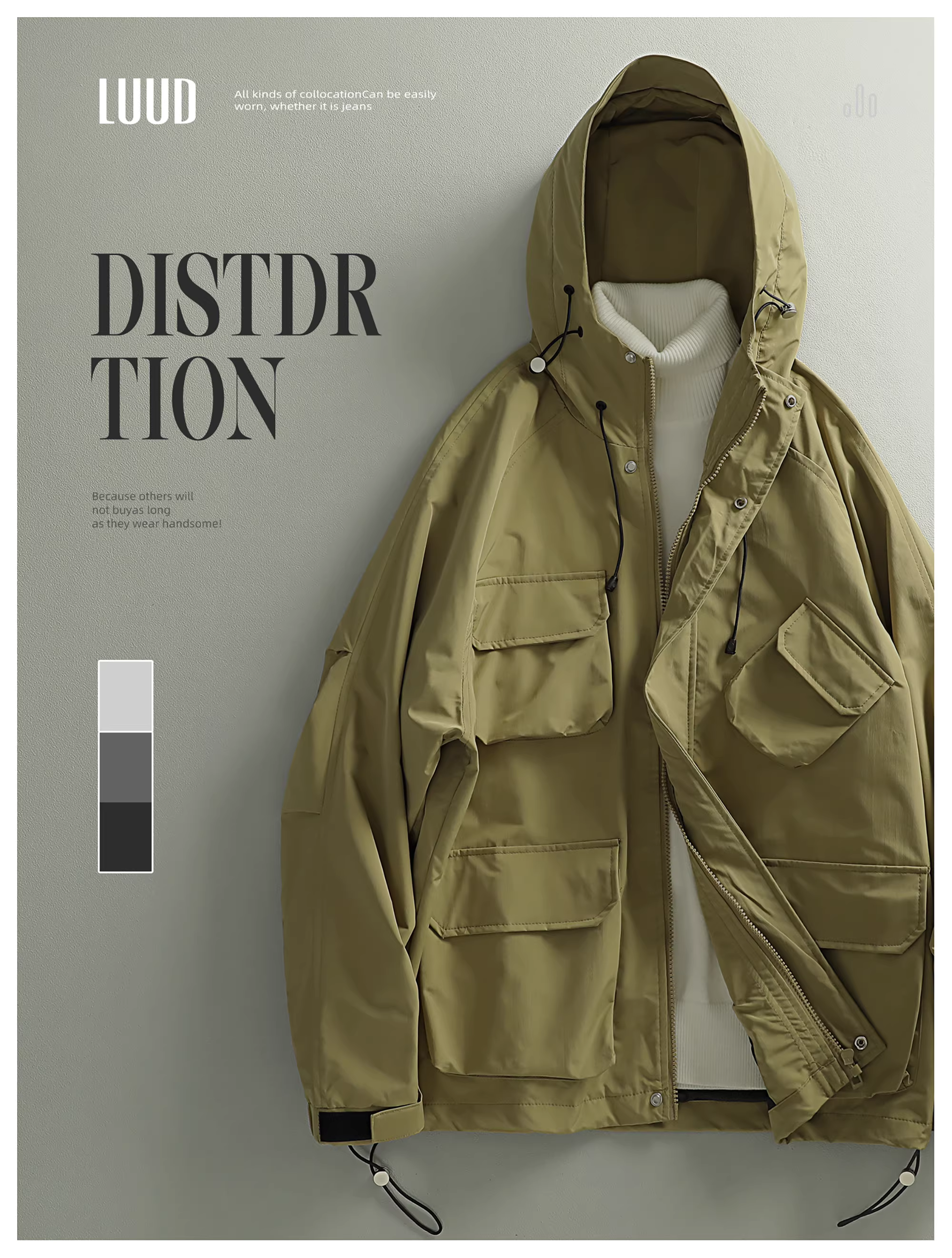 - Áo khoác gió đa năng phong cách thời trang nam LUUD, kiểu dáng năng động, nhiều túi, có mũ, dành cho giới trẻ.