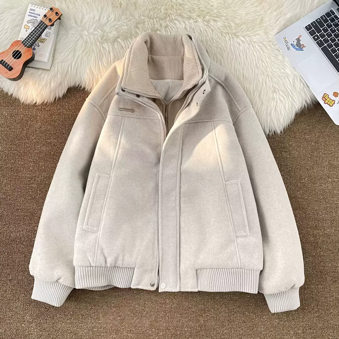 - Áo khoác hai mảnh mùa xuân thu dành cho nam, phong cách thời thượng, thiết kế cá tính, áo khoác len dáng rộng kiểu Mỹ.