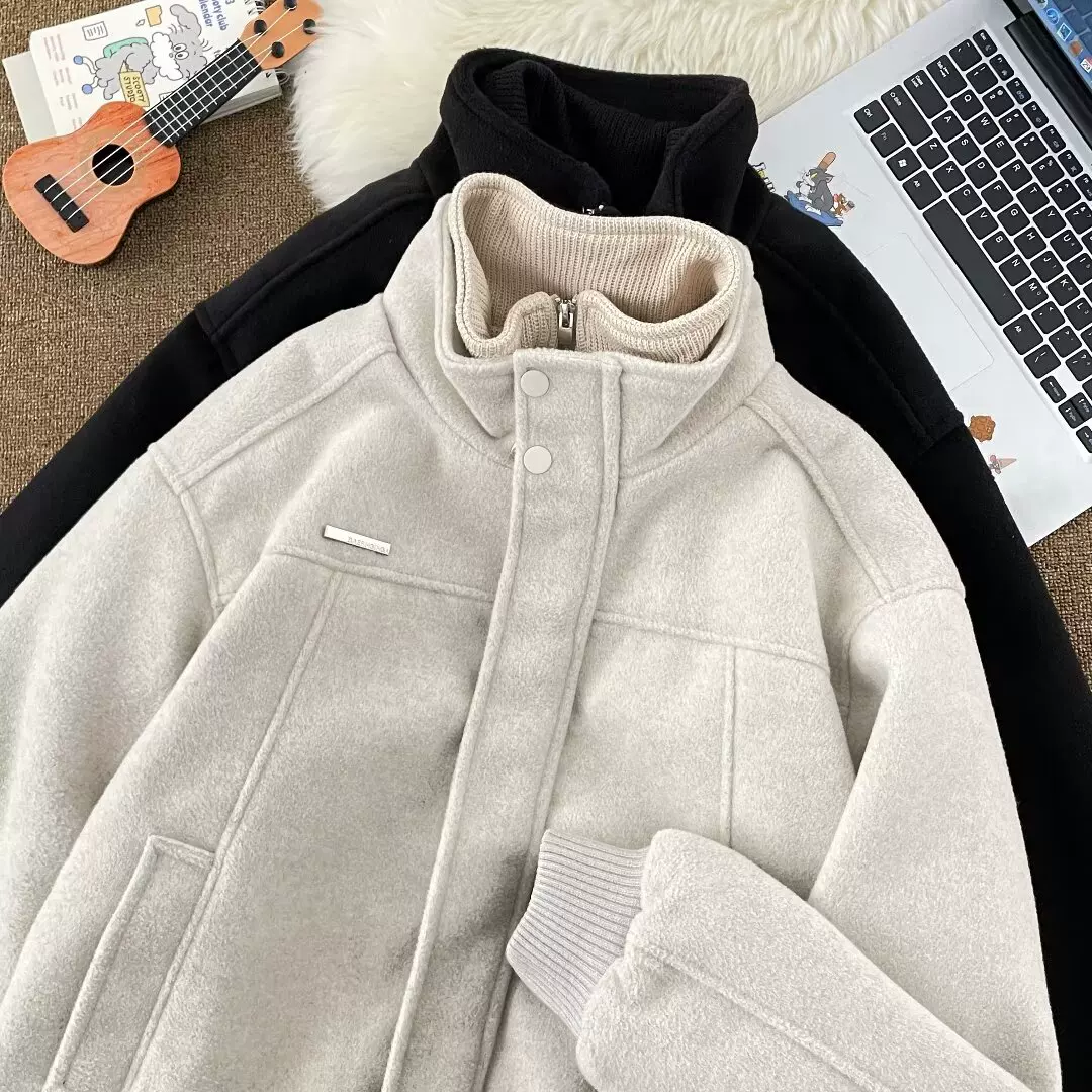 Áo khoác hai mảnh mùa xuân thu dành cho nam, phong cách thời thượng, thiết kế cá tính, áo khoác len dáng rộng kiểu Mỹ.