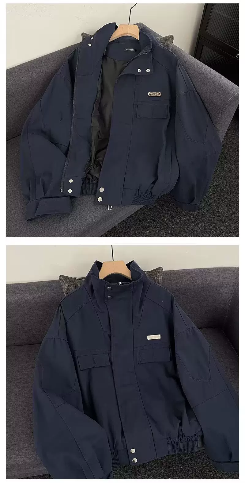 - Áo khoác Harrington cổ đứng dành cho nam, áo khoác ngoài thời trang mùa xuân thu, kiểu dáng rộng rãi thoải mái, phong cách Mỹ, cao cấp và cá tính.