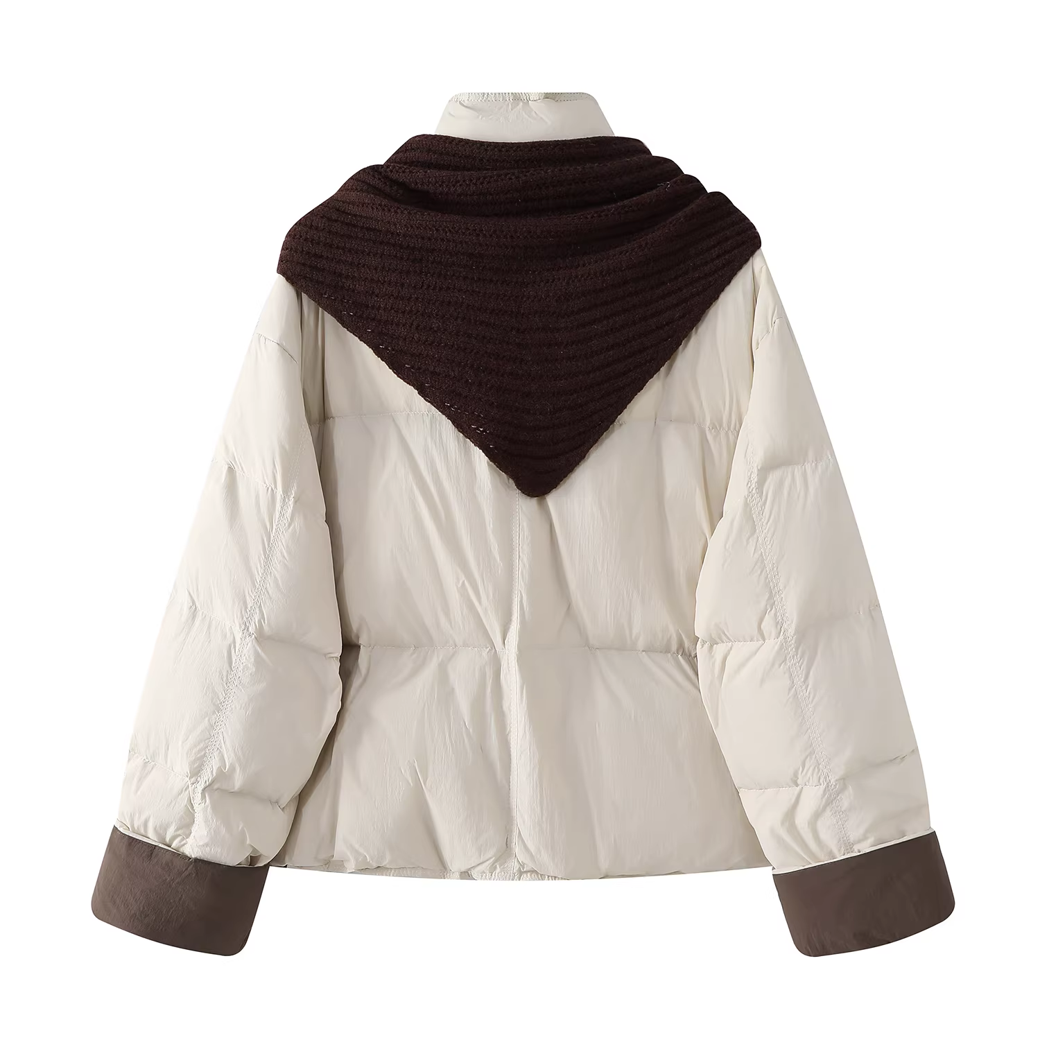 - Áo khoác len cổ đứng phối màu sành điệu của CuteGirl dành cho nữ, mùa thu đông, áo khoác cotton thanh lịch, rộng rãi, đa năng, giảm tuổi tác.