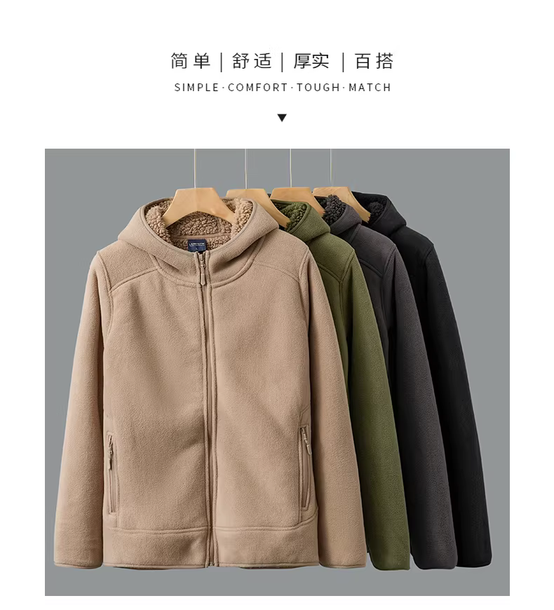 - Áo khoác len cừu nặng 600G dành cho nam, áo khoác cotton ấm áp lót lông cừu mùa thu đông, áo nỉ có mũ trùm đầu bằng lông cừu dày dặn