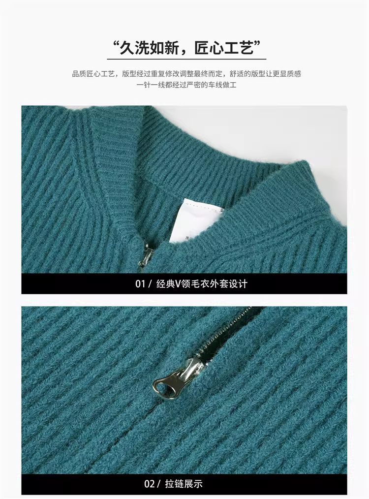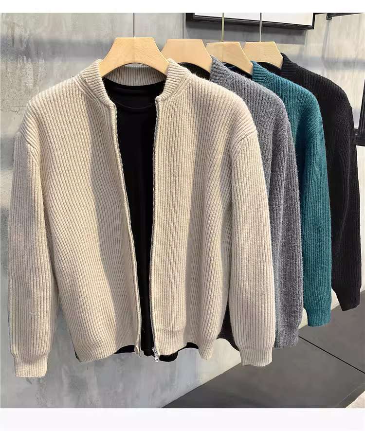 Áo khoác len dệt kim dày LUUD cổ bóng chày đơn giản dành cho nam, chất liệu dệt kim dày, áo len dáng ôm màu trơn mùa đông