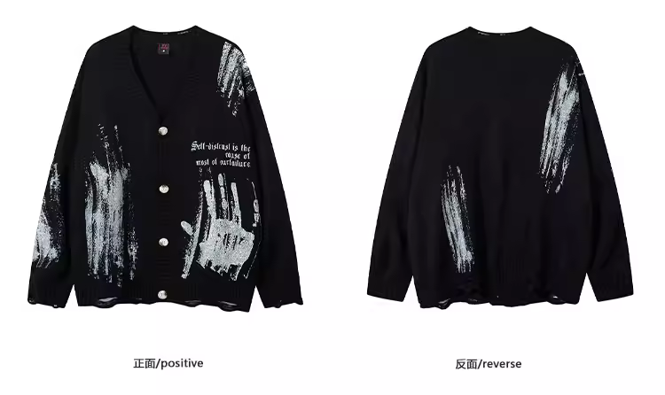 - Áo khoác len dệt kim họa tiết graffiti phong cách retro Mỹ, unisex, vintage, cặp đôi, kiểu dáng thời thượng.