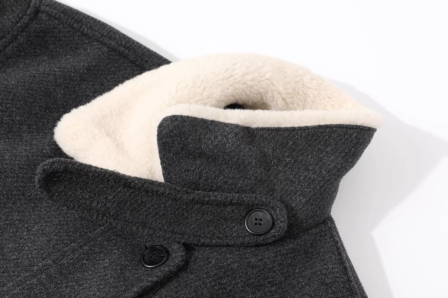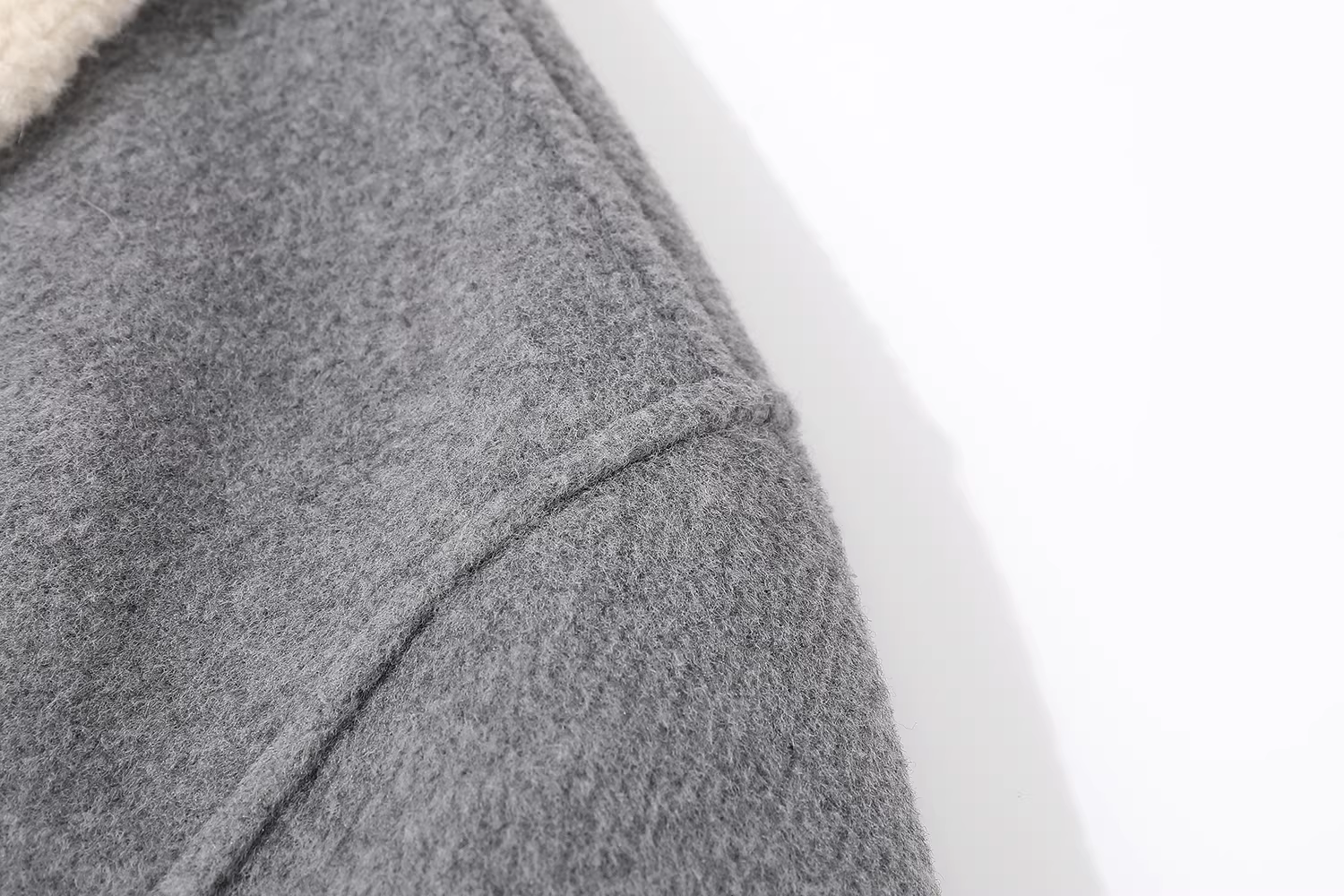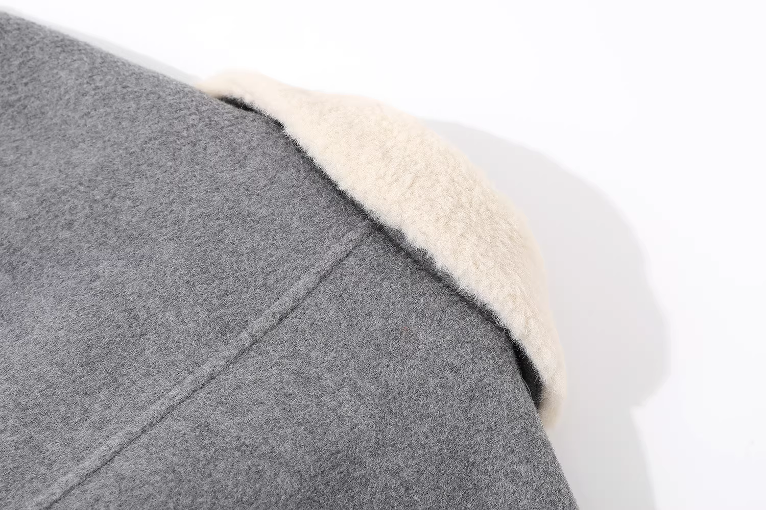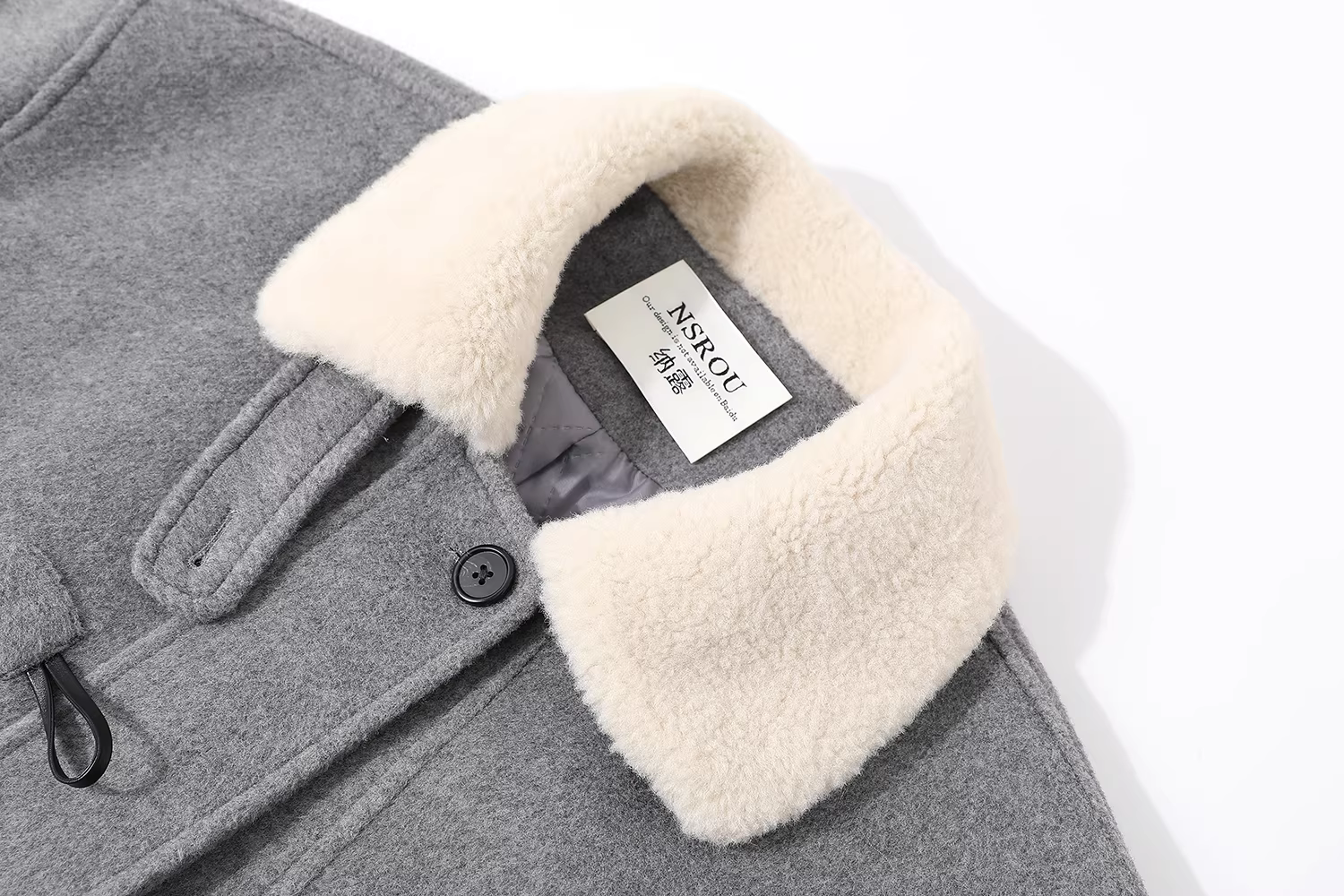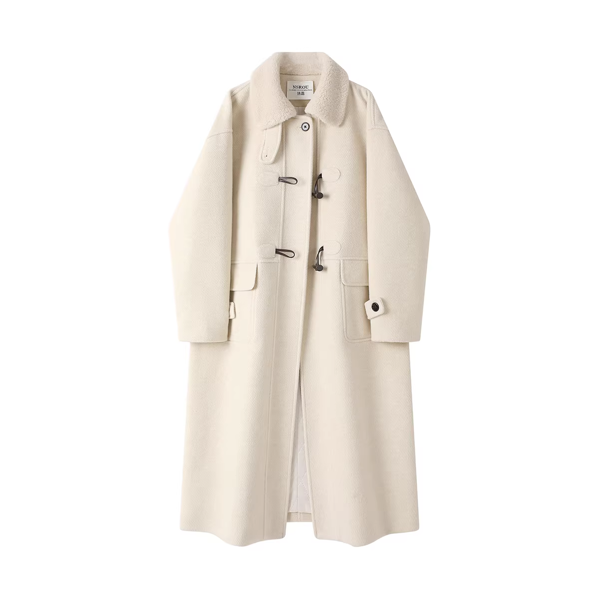 - Áo khoác len màu xám có nút bấm cao cấp phong cách NSROU có cổ đứng dành cho nữ, dài vừa phải cho mùa thu đông.