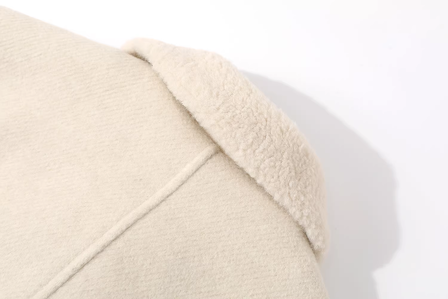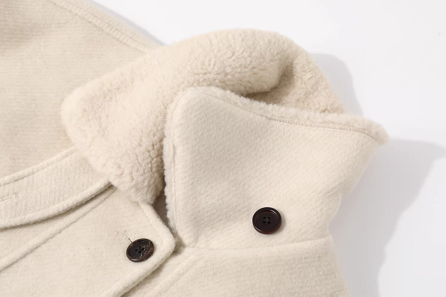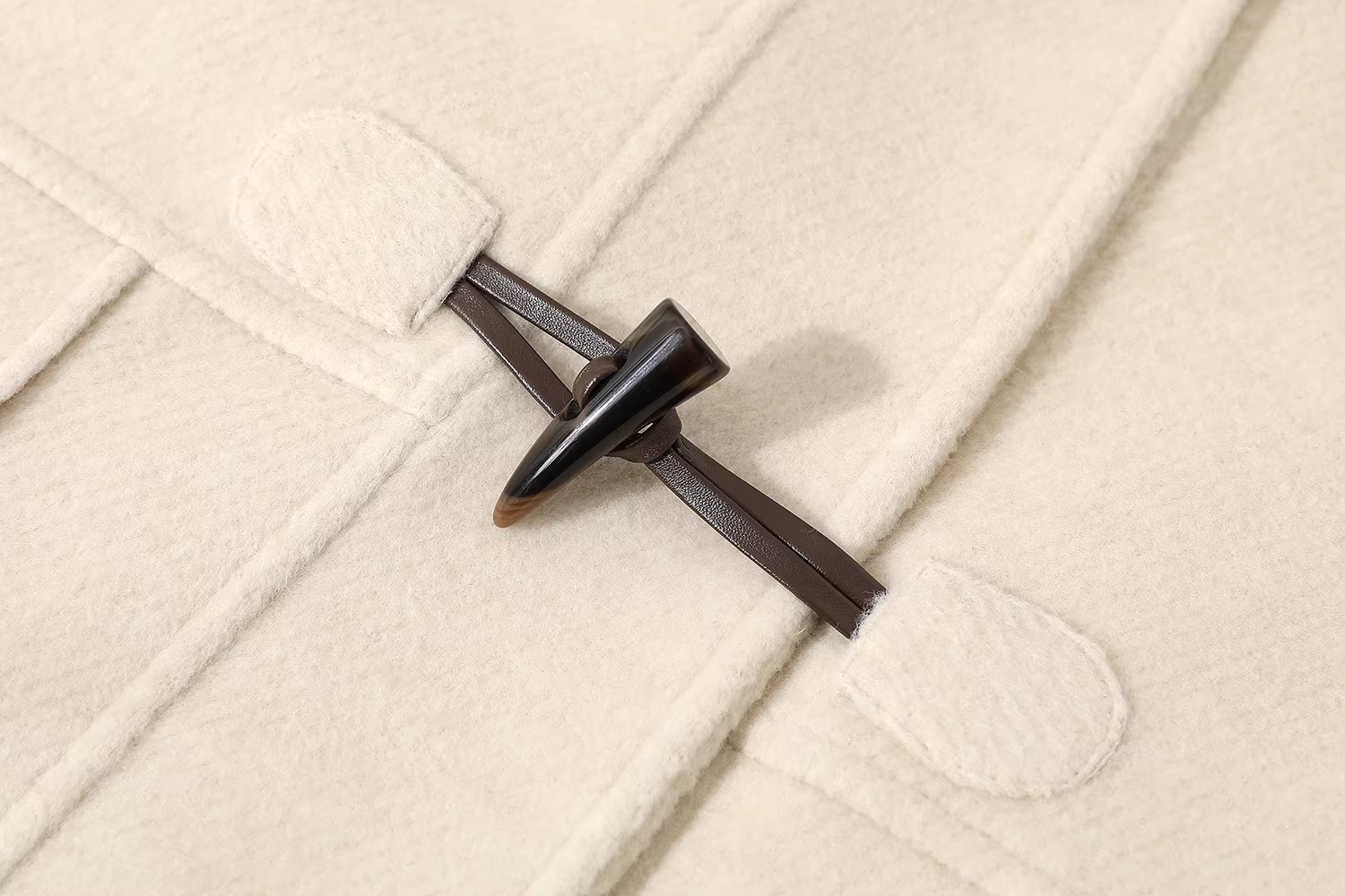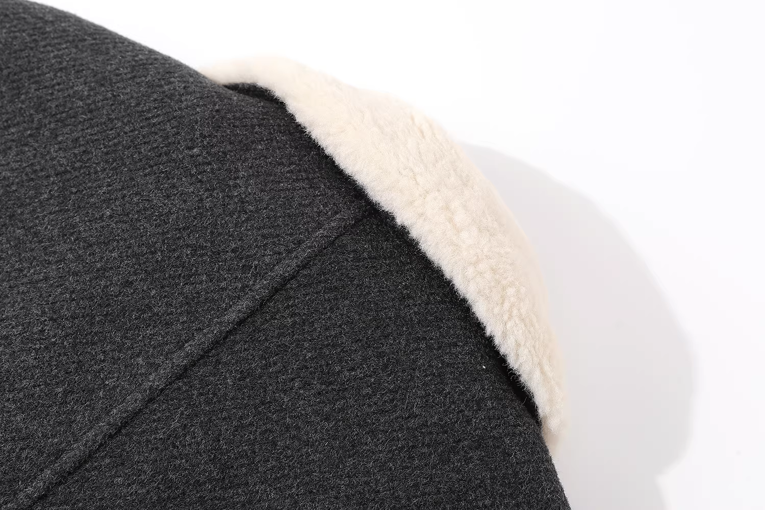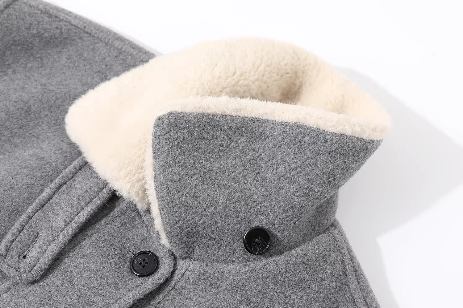 - Áo khoác len màu xám có nút bấm cao cấp phong cách NSROU có cổ đứng dành cho nữ, dài vừa phải cho mùa thu đông.