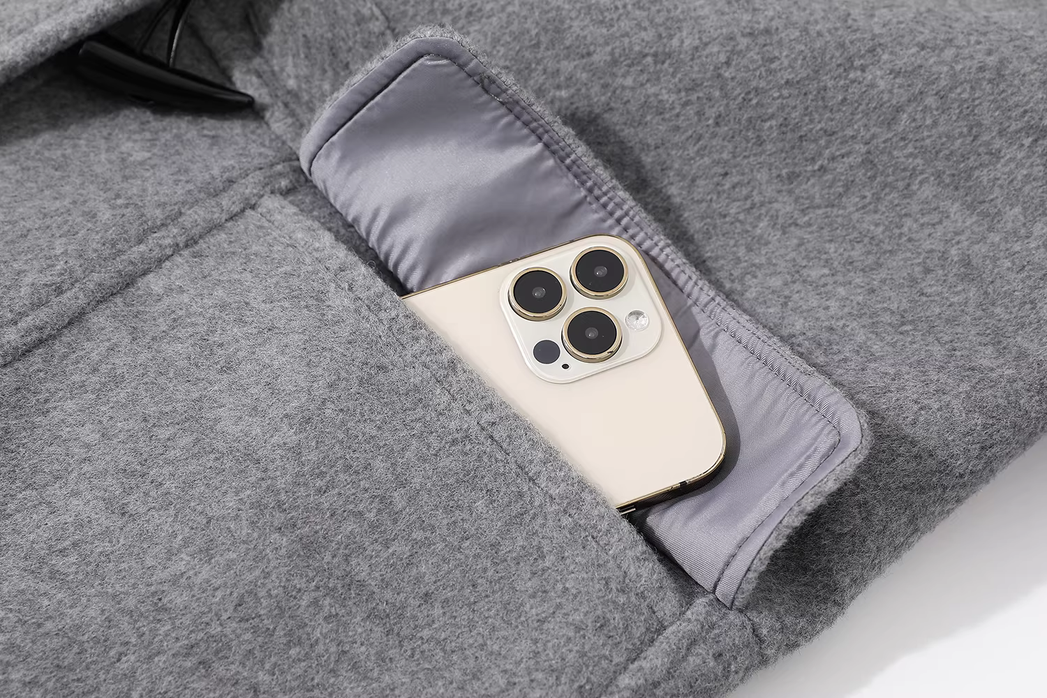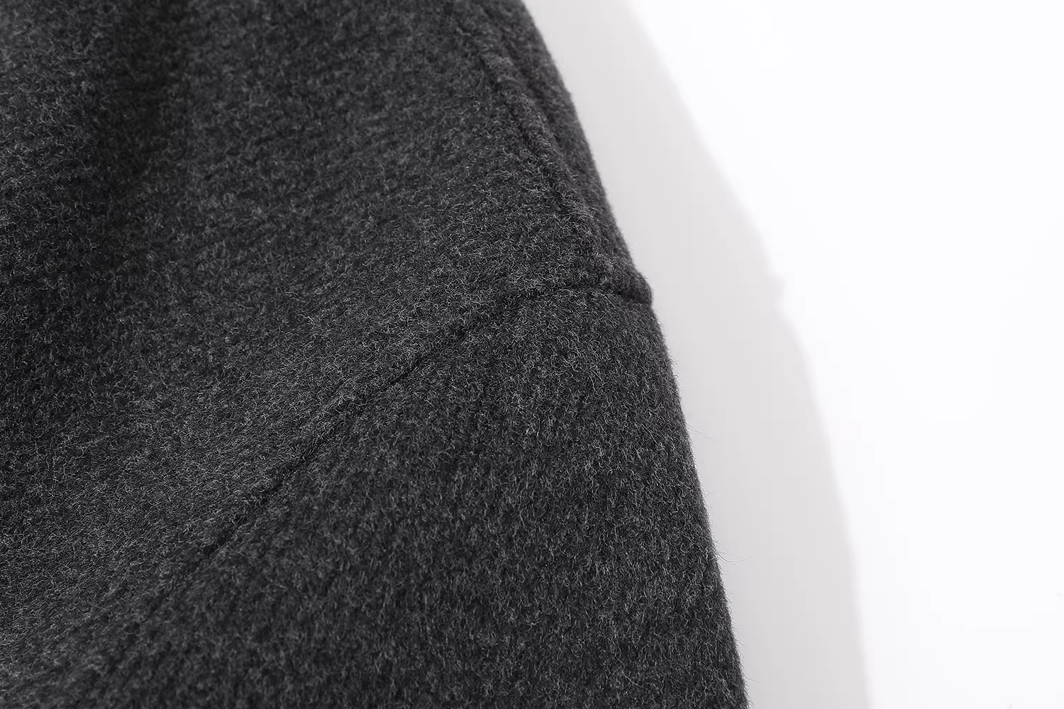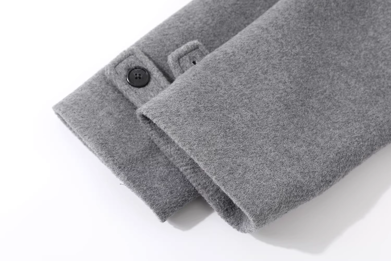 Áo khoác len màu xám có nút bấm cao cấp phong cách NSROU có cổ đứng dành cho nữ, dài vừa phải cho mùa thu đông.