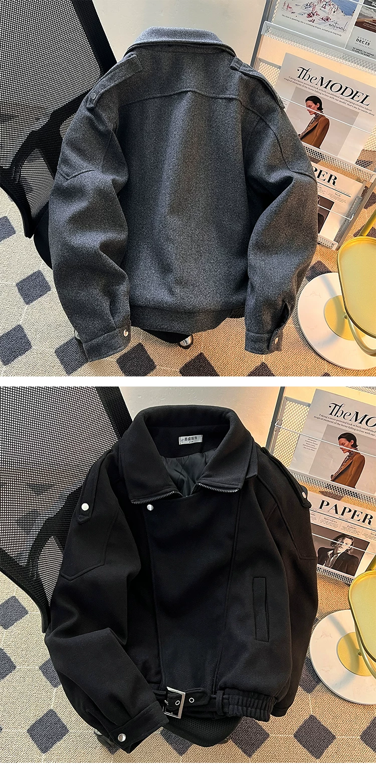 - Áo khoác len mùa thu đông nam cleanfit áo khoác len ngắn dáng rộng hợp thời trang phong cách Mỹ cao cấp