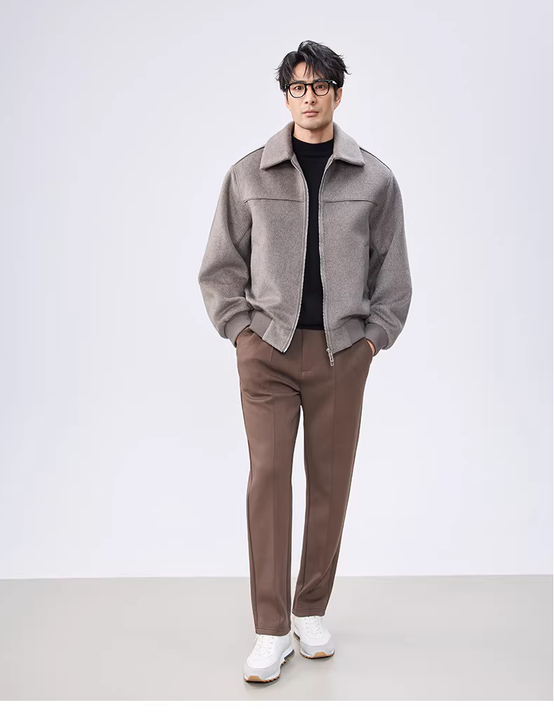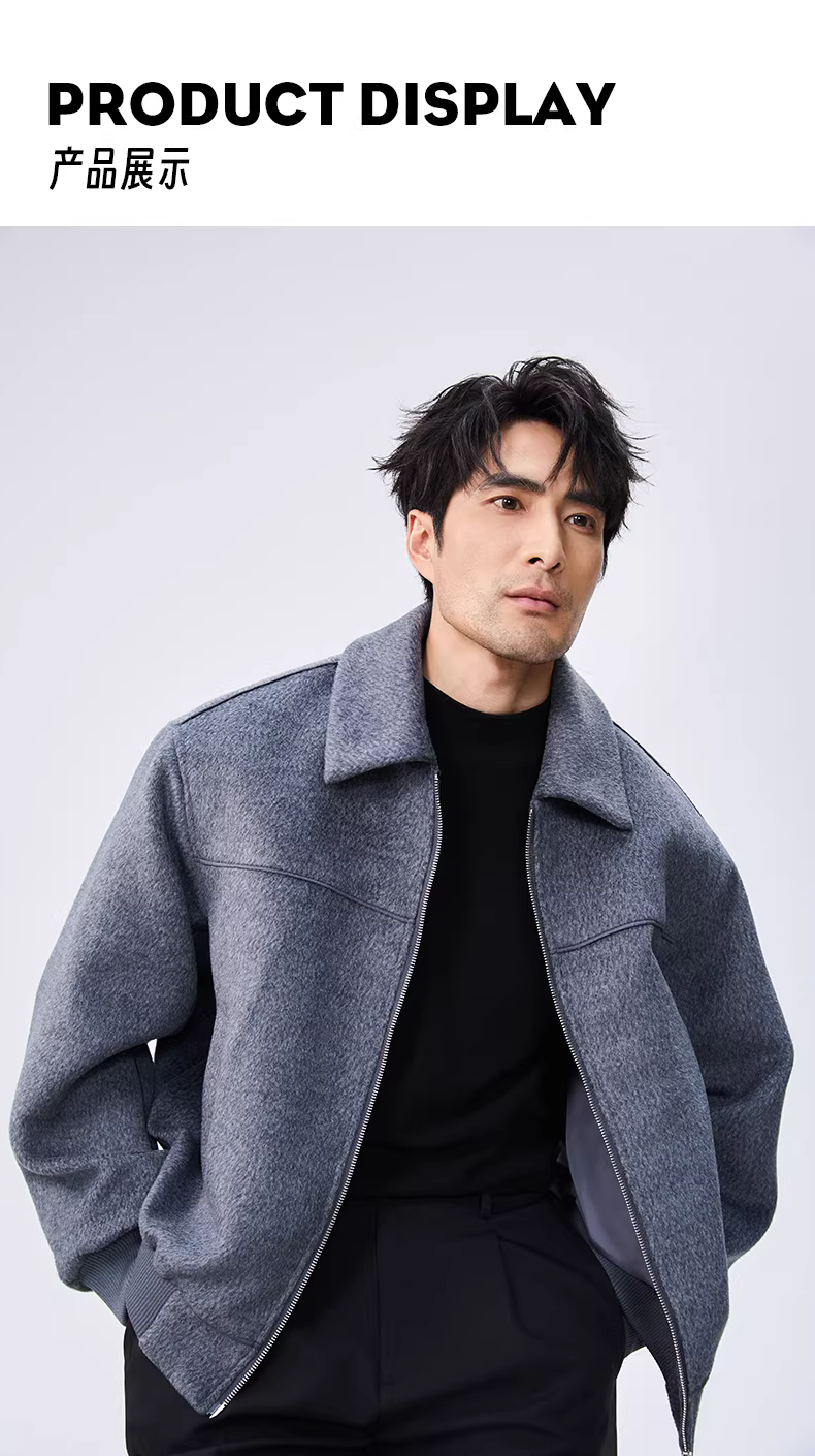- Áo khoác len nam khóa kéo đôi, kiểu mới thu đông 2025, chất lượng cao, thời trang, dáng rộng, ngắn.