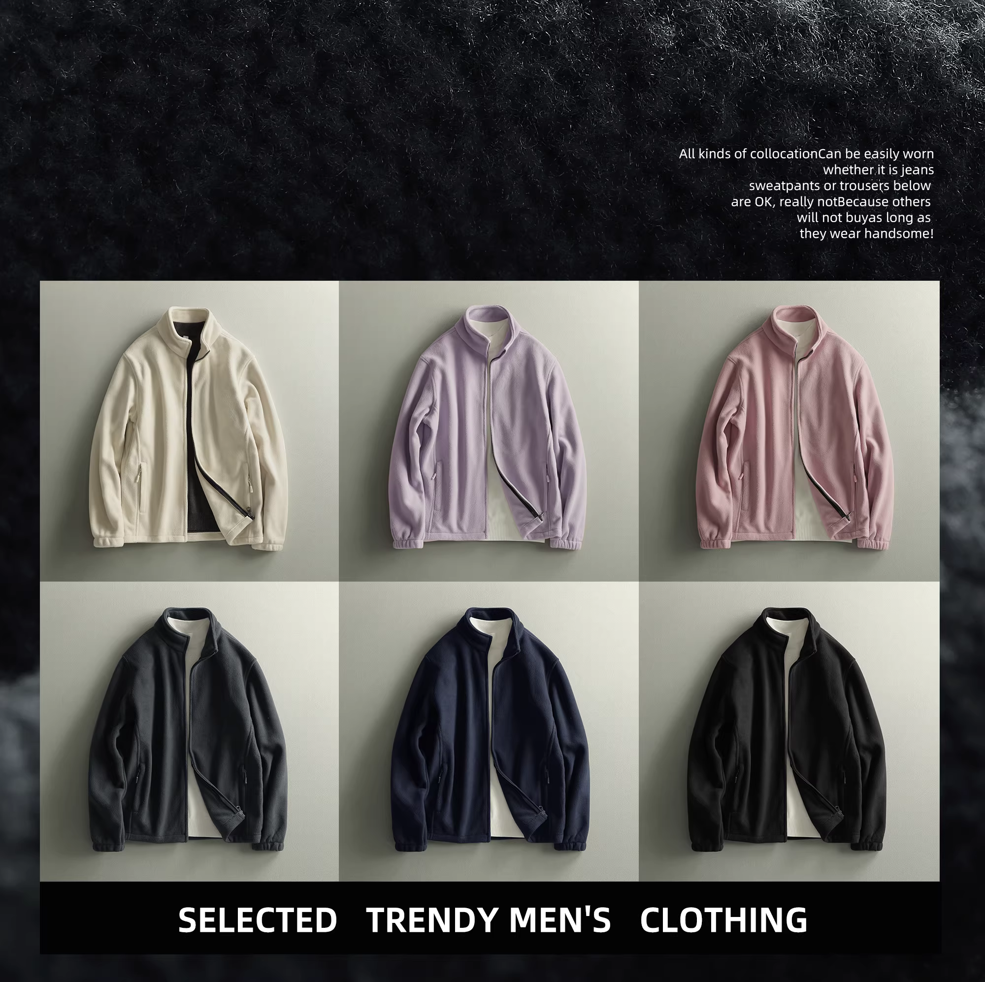 - Áo khoác lông cừu nhiều màu LUUD nam mùa thu đông áo khoác cổ đứng lớp bên trong ấm áp áo khoác lông cừu dày