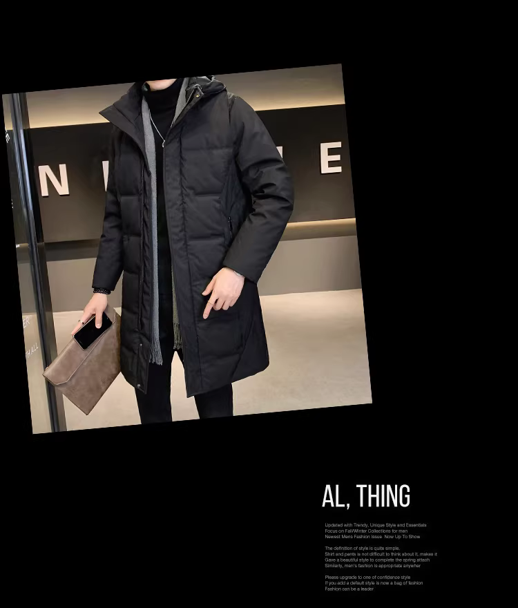 - Áo khoác lông vũ dài vừa phải dành cho nam, thương hiệu thời trang mùa đông mới, áo khoác thường ngày phong cách Hàn Quốc sành điệu và thời trang, dày dặn để giữ ấm, chất lượng cao.