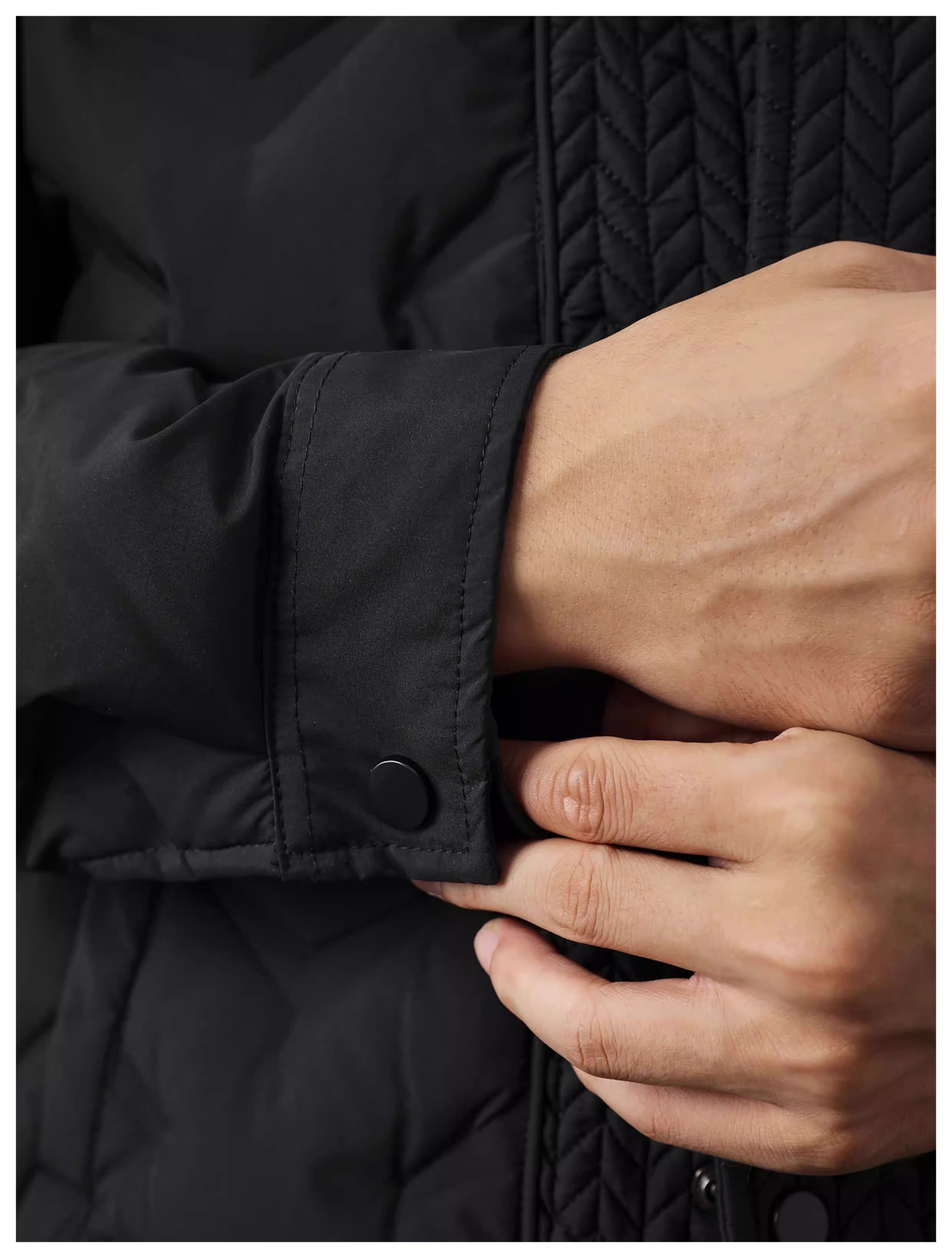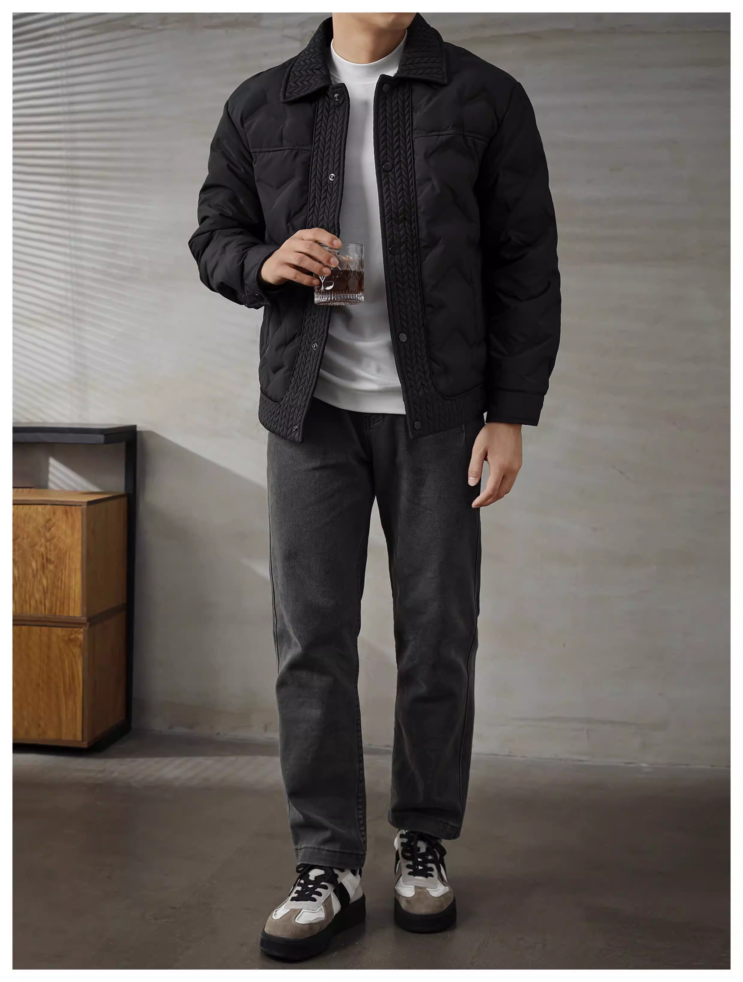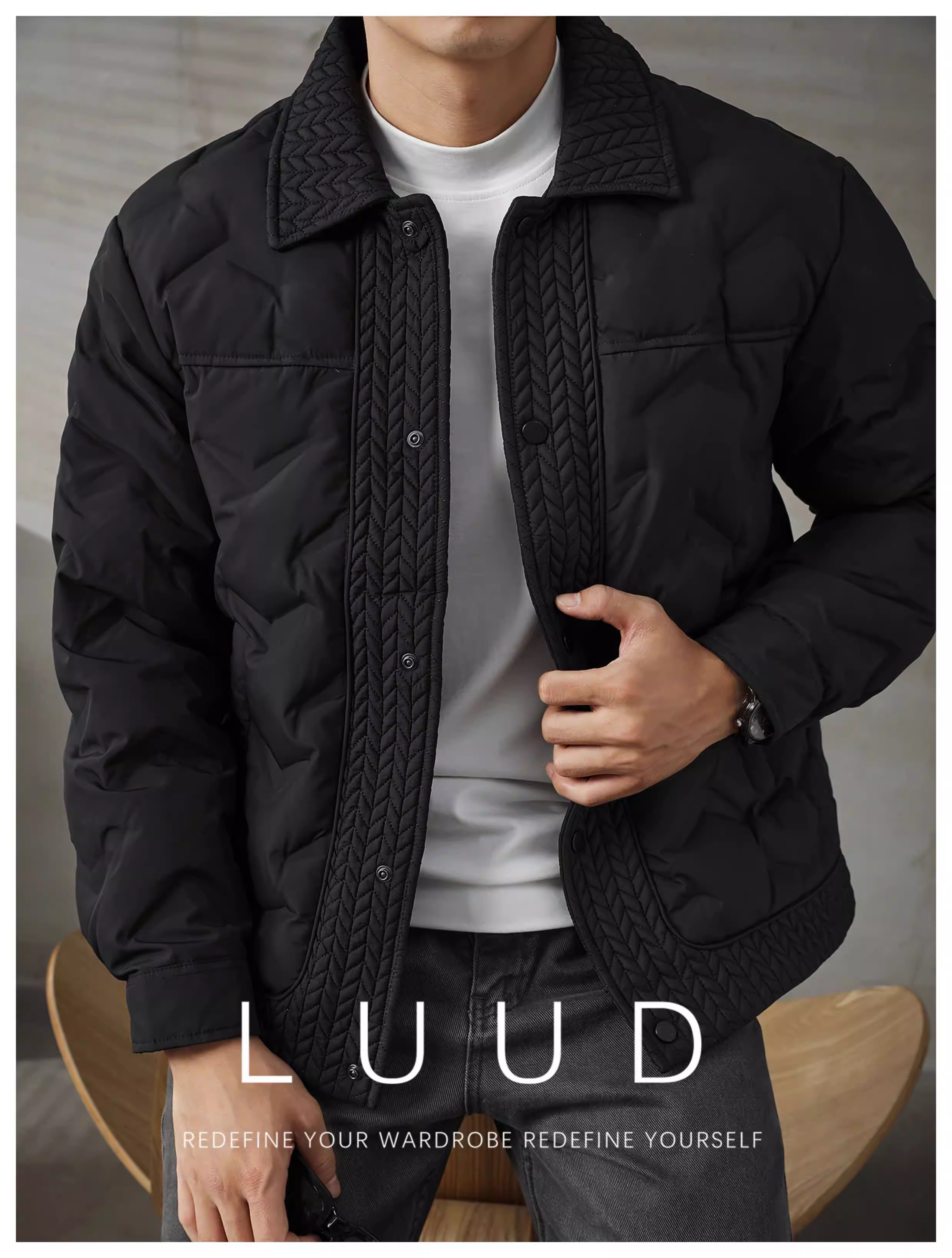 Áo khoác lông vũ đen chất liệu lúa mì cao cấp LUUD dành cho nam mùa đông, cổ trụ, ấm áp, phong cách quý ông thời thượng