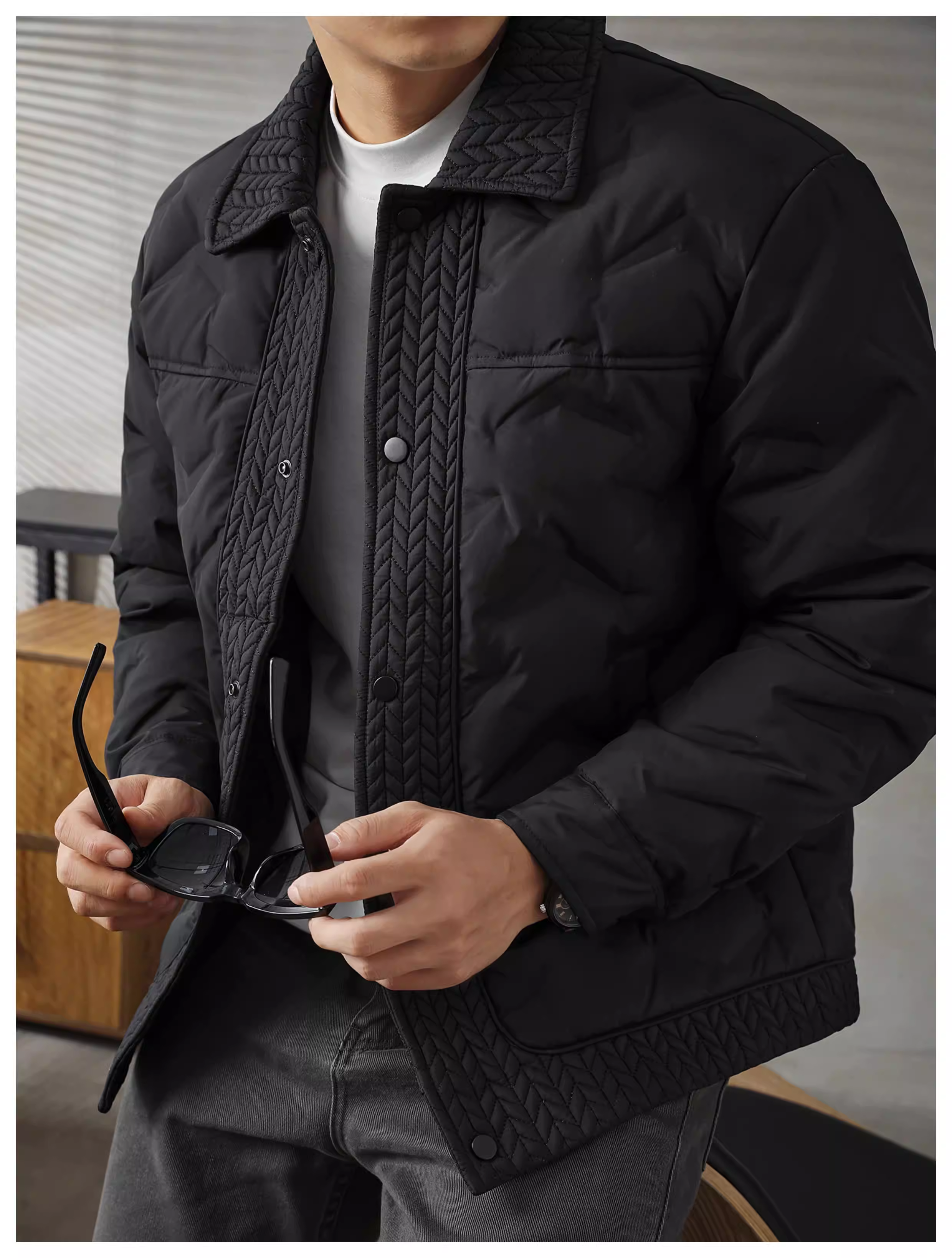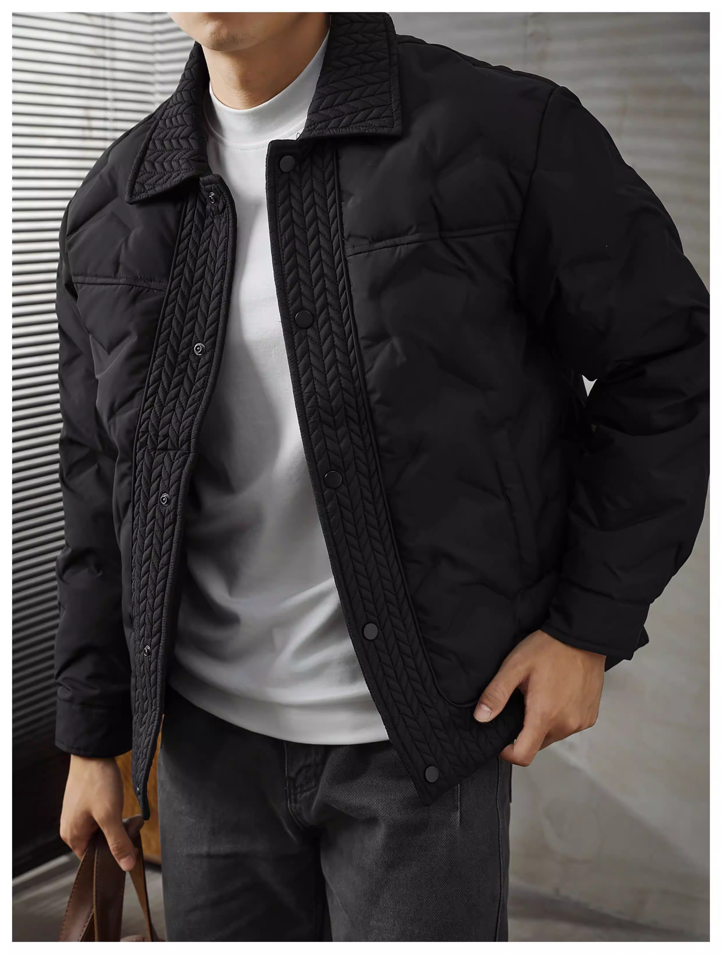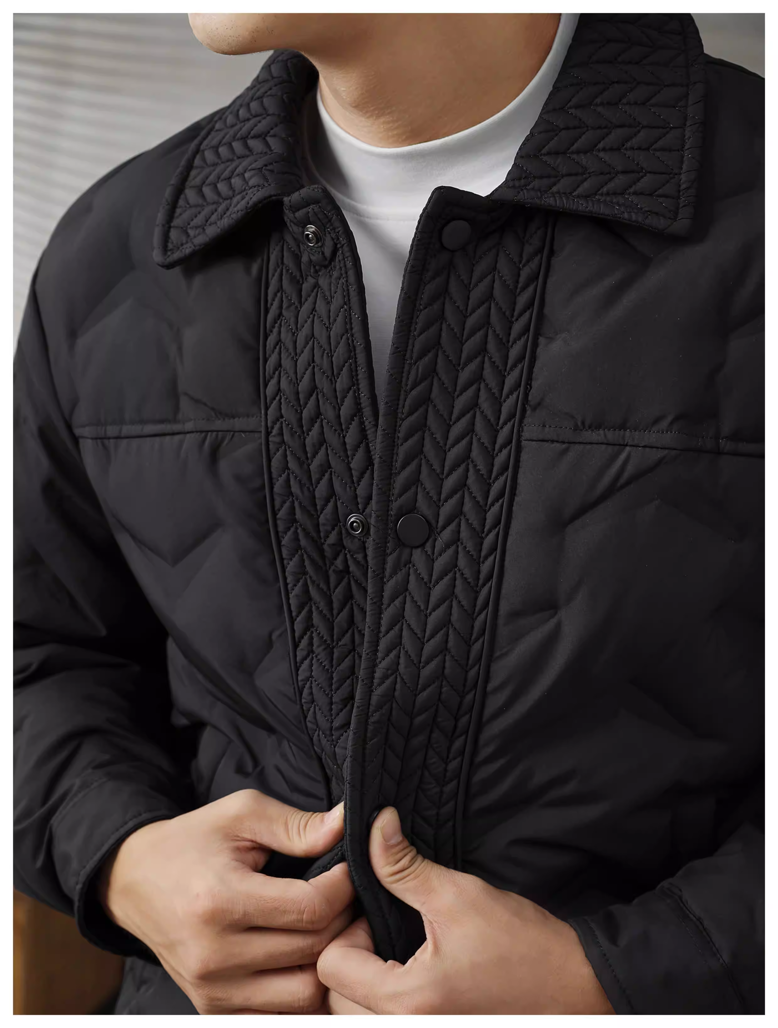 Áo khoác lông vũ đen chất liệu lúa mì cao cấp LUUD dành cho nam mùa đông, cổ trụ, ấm áp, phong cách quý ông thời thượng