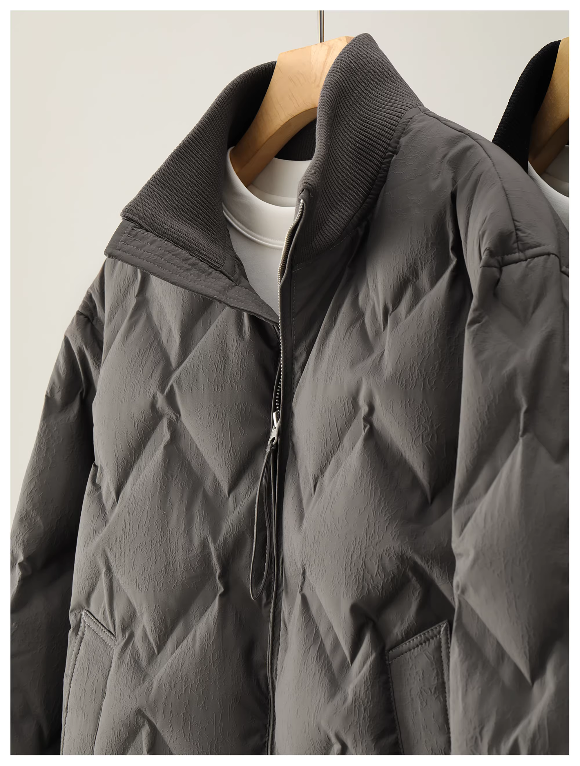 Áo khoác lông vũ trắng LUUD Cityboy dành cho nam, kiểu dáng may chần hình thoi, chất liệu dệt kim, cổ đứng