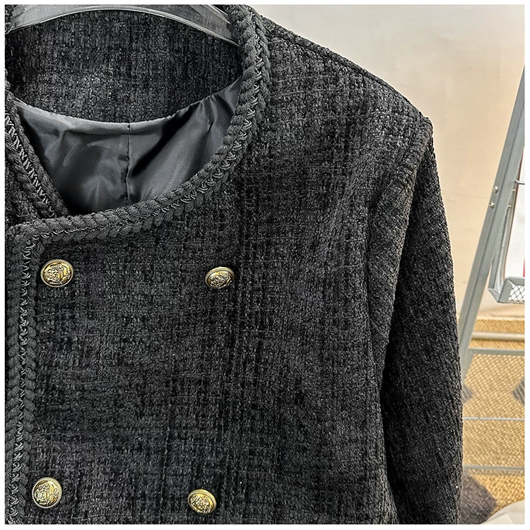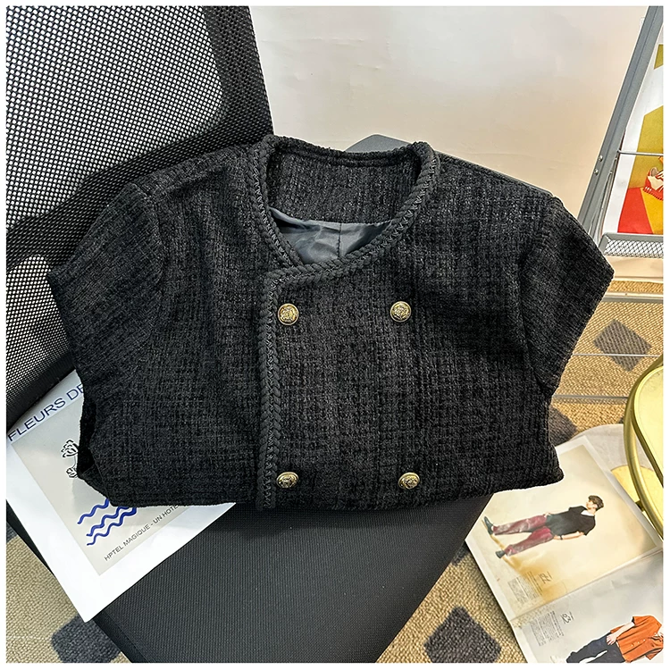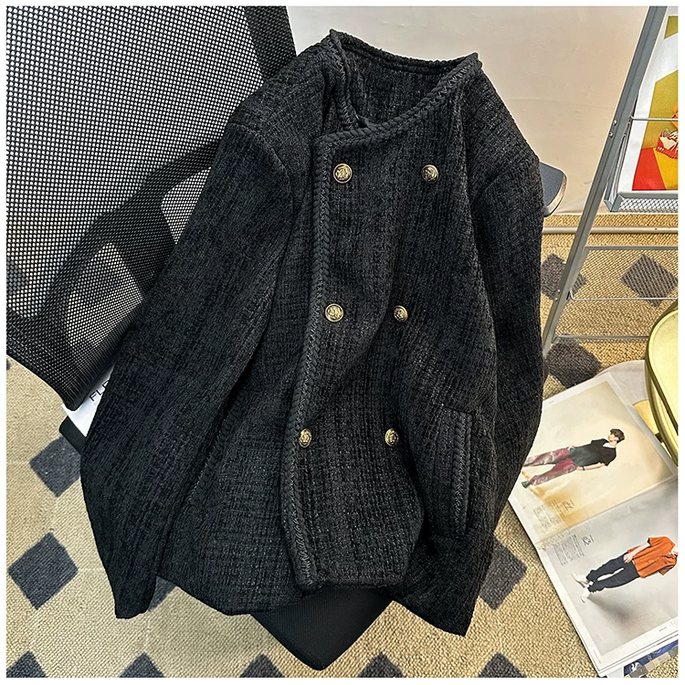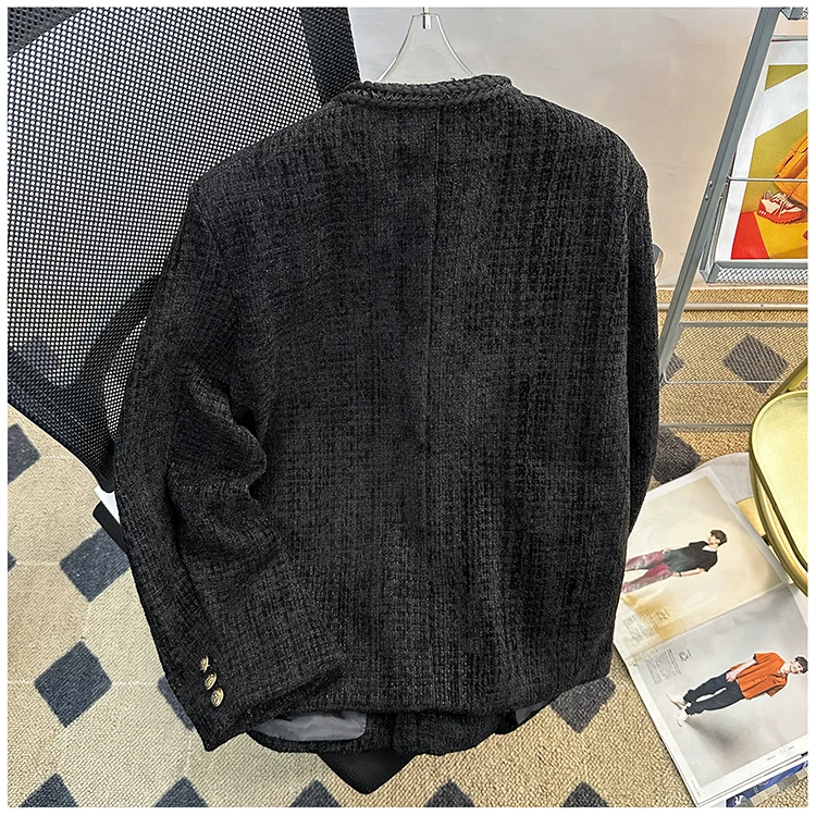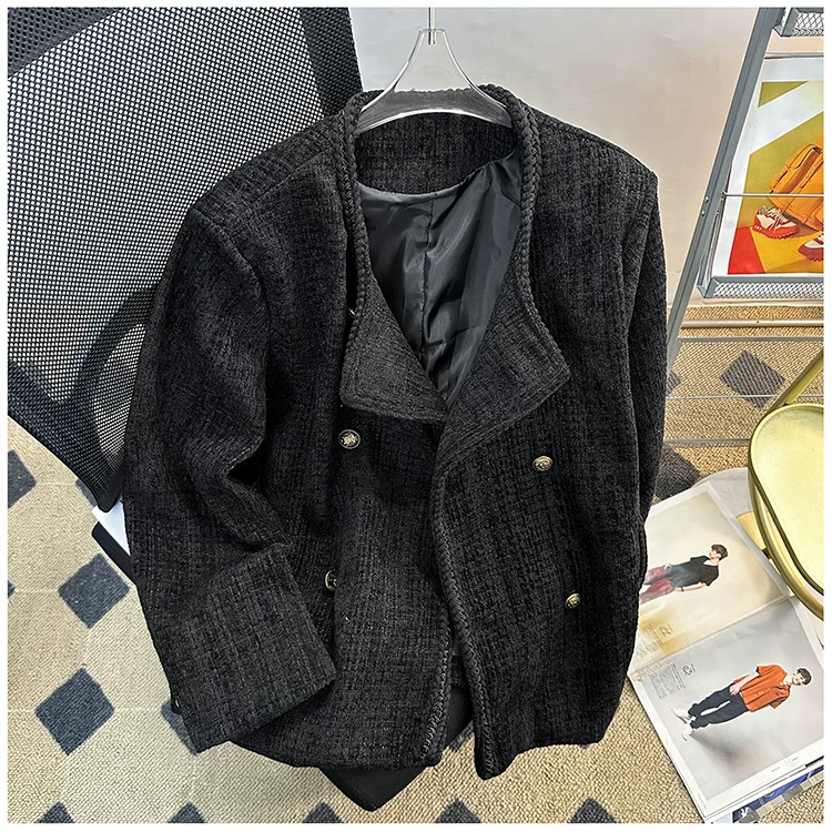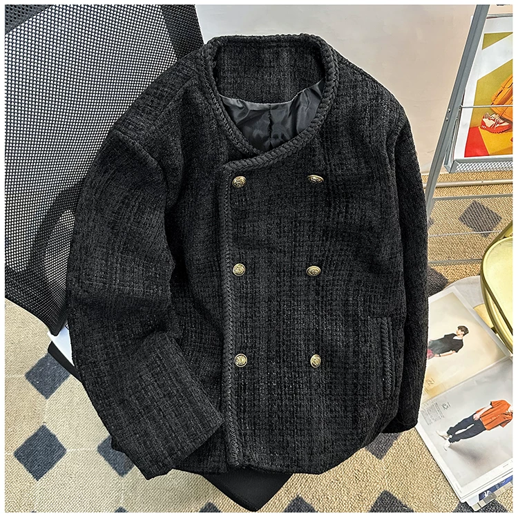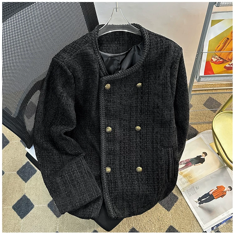 Áo khoác nam kiểu Chanel hai hàng khuy, blazer len ngắn cho mùa xuân thu, áo kiểu Mỹ thời thượng.