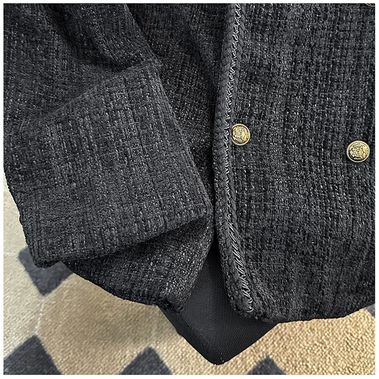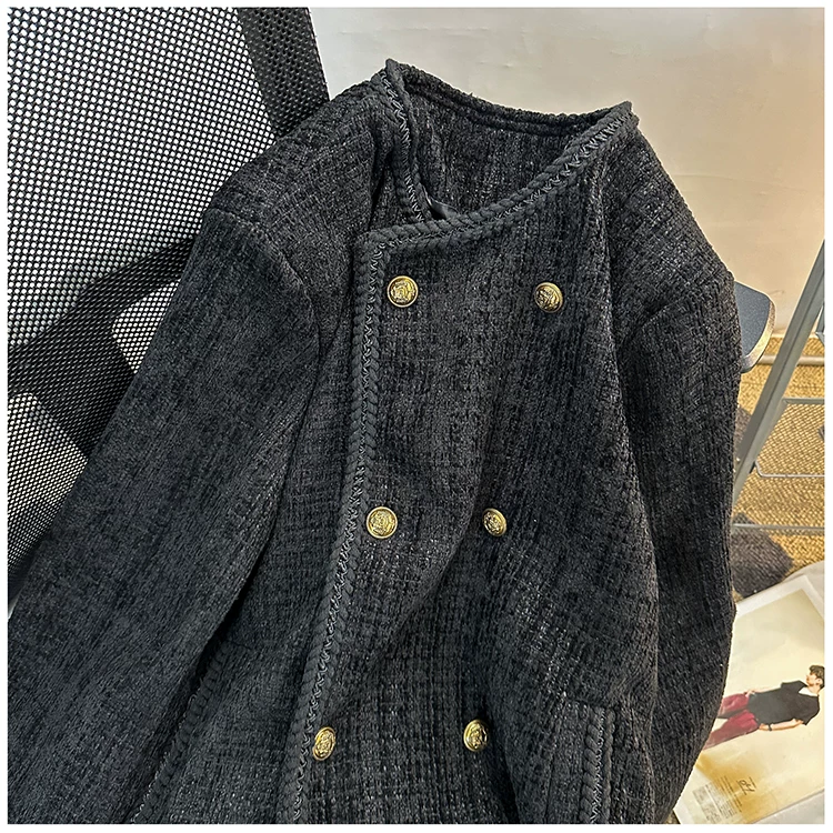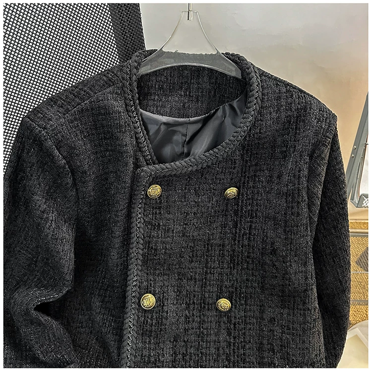 - Áo khoác nam kiểu Chanel hai hàng khuy, blazer len ngắn cho mùa xuân thu, áo kiểu Mỹ thời thượng.
