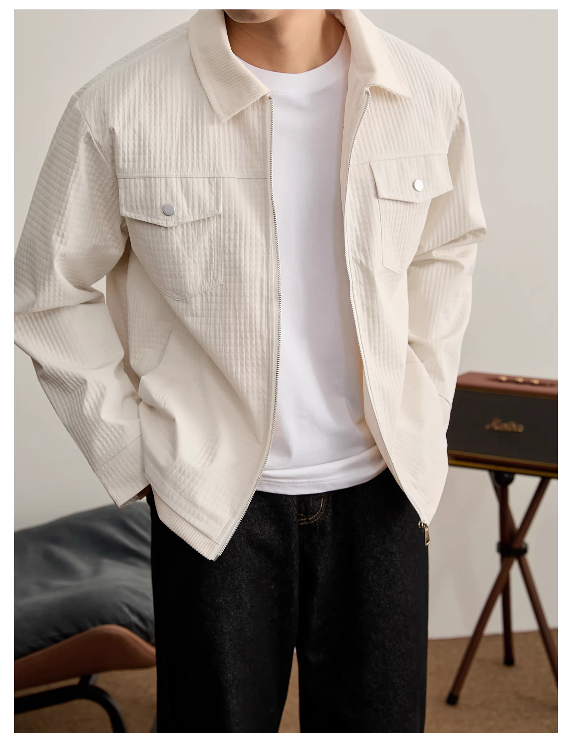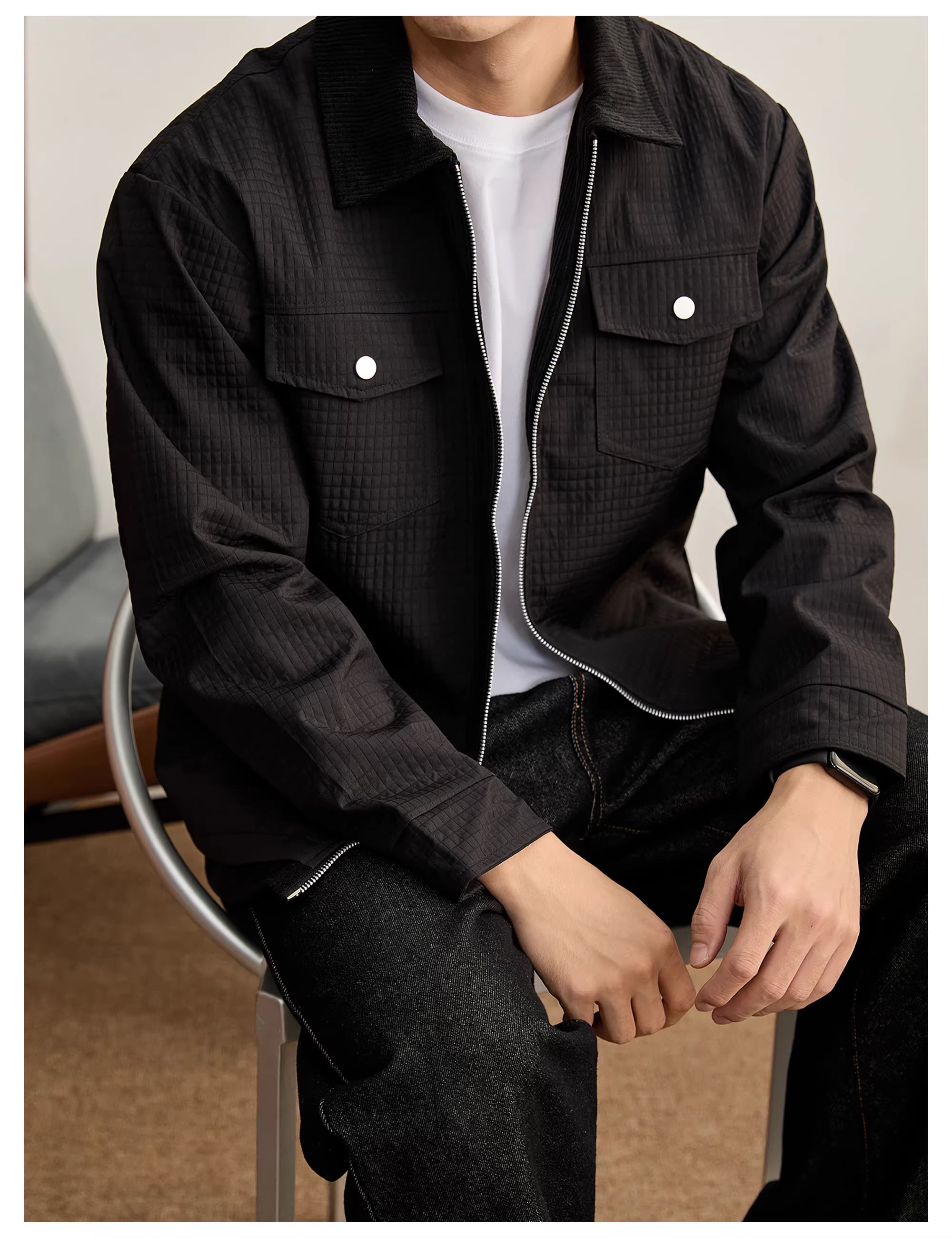 Áo khoác nam mùa đông LUUD chất liệu vải tổ ong, cổ áo vải gân, phối họa tiết, cổ áo dựng đứng, phong cách thường ngày