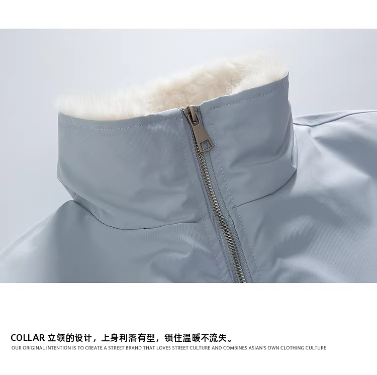 Áo khoác nam mùa đông thời trang thương hiệu Wukong, chất liệu lông thỏ giả dày dặn, cổ đứng, kiểu dáng rộng rãi, ấm áp và đa năng, có lớp lót lông cừu.