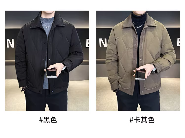 - Áo khoác nam phối vải, kiểu dáng mới mùa đông 2025, đa năng, nhẹ, ấm, áo khoác lông vịt dày dặn.