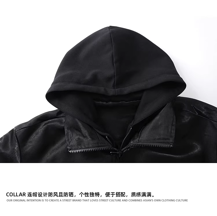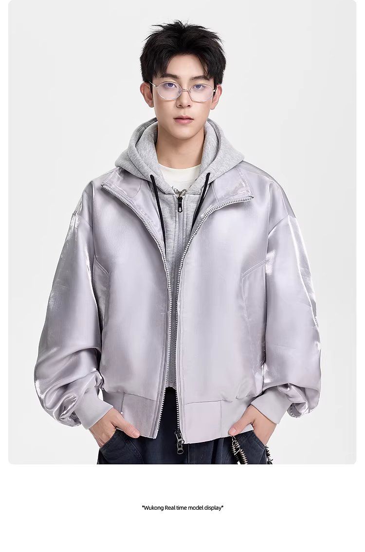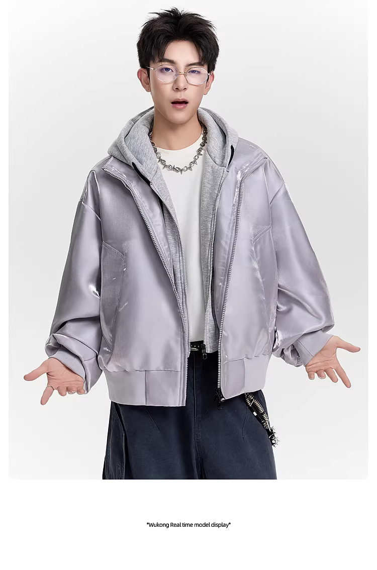 Áo khoác nam phong cách hip-hop Âu Mỹ, chất liệu bóng, màu trơn, kiểu dáng thời trang, có mũ, giả hai lớp, thương hiệu Wukong đang có hàng.