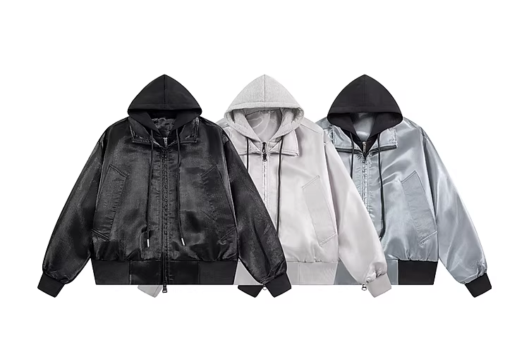 - Áo khoác nam phong cách hip-hop Âu Mỹ, chất liệu bóng, màu trơn, kiểu dáng thời trang, có mũ, giả hai lớp, thương hiệu Wukong đang có hàng.