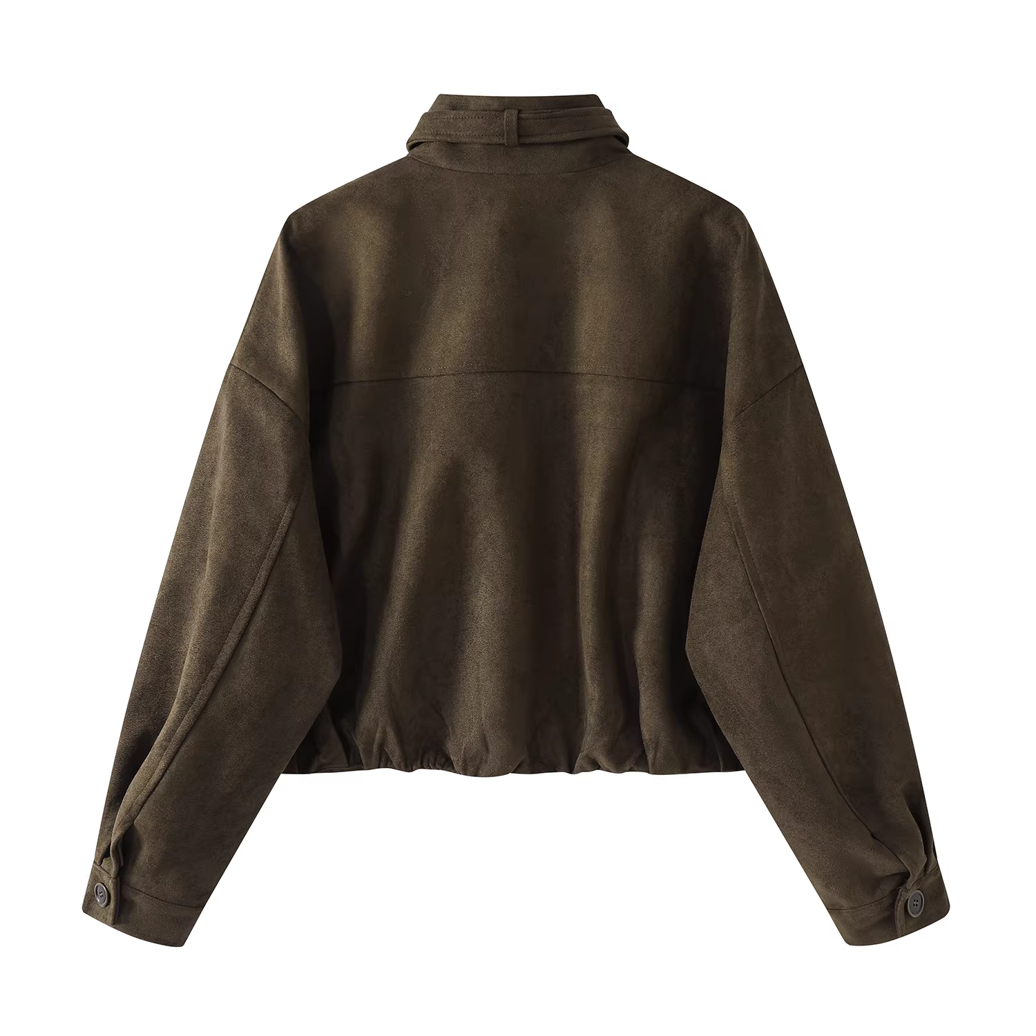 - Áo khoác ngắn bằng da lộn cổ đứng lấy cảm hứng từ thiết kế CuteGirl dành cho nữ, áo khoác dáng rộng thông thường cao cấp mùa thu đa năng