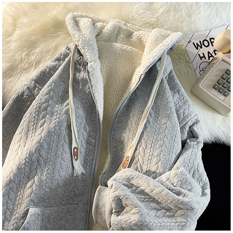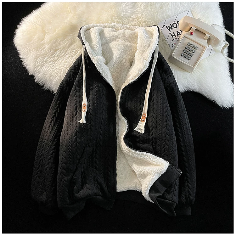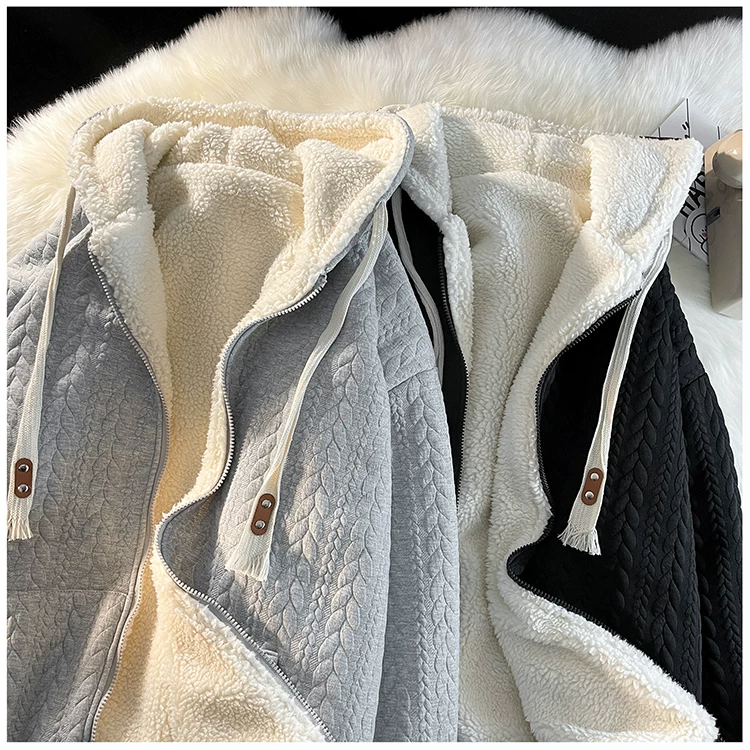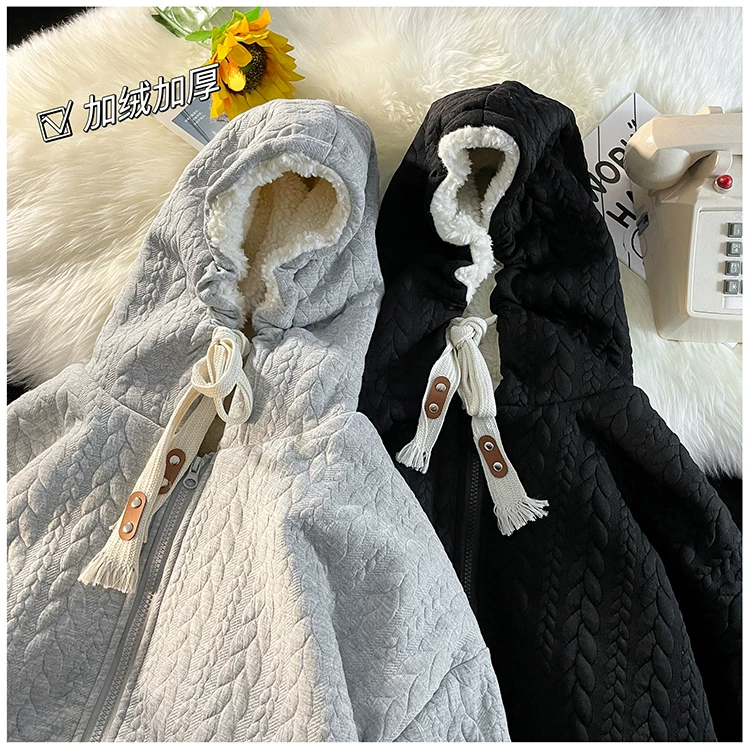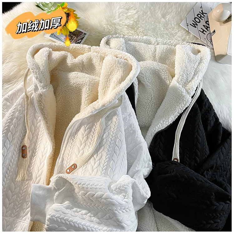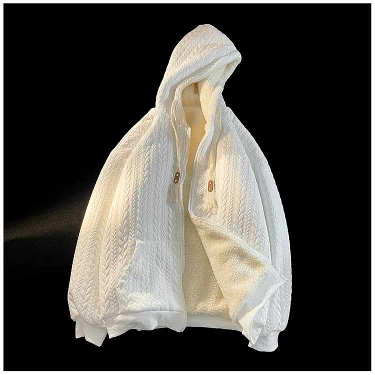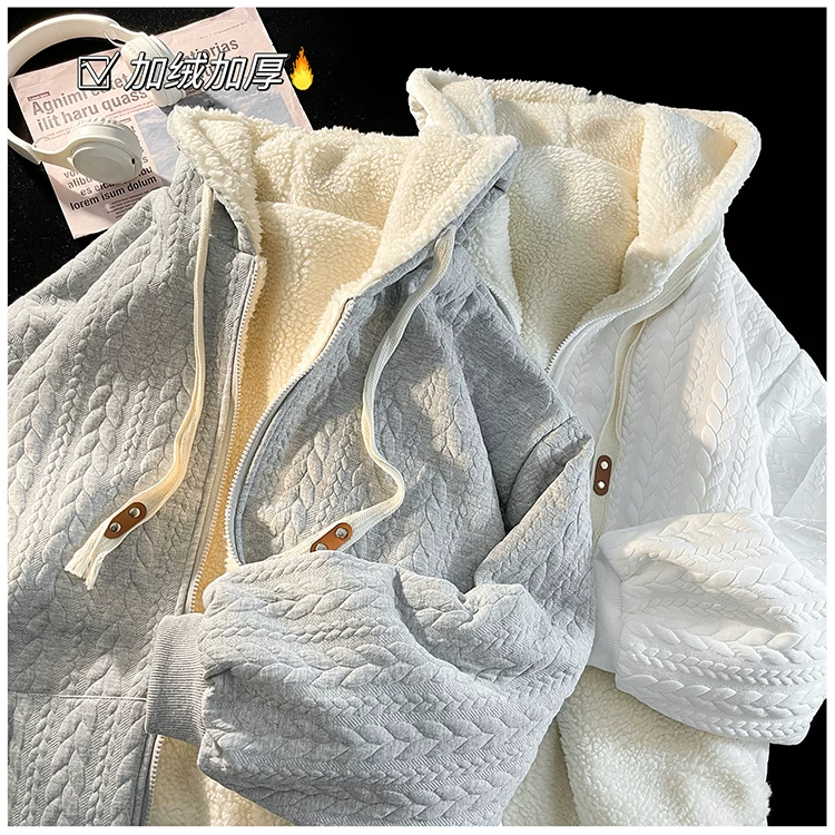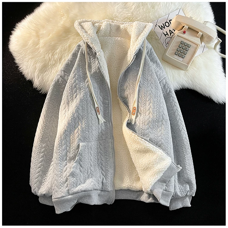 - Áo khoác nỉ dày dặn mùa thu đông mới dành cho nam, kiểu cardigan Mỹ phong cách ins có mũ, áo khoác cặp đôi rộng rãi, chất liệu nặng.