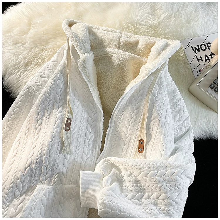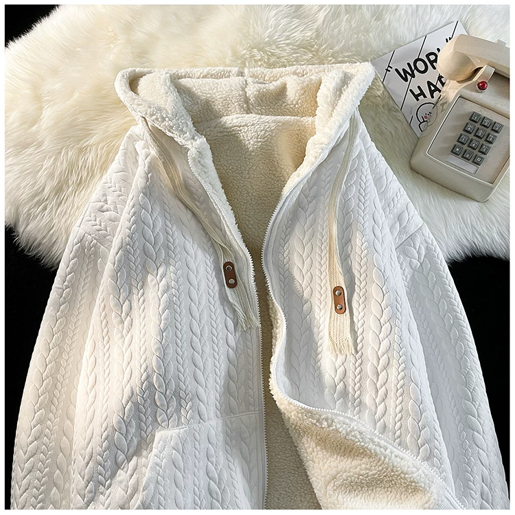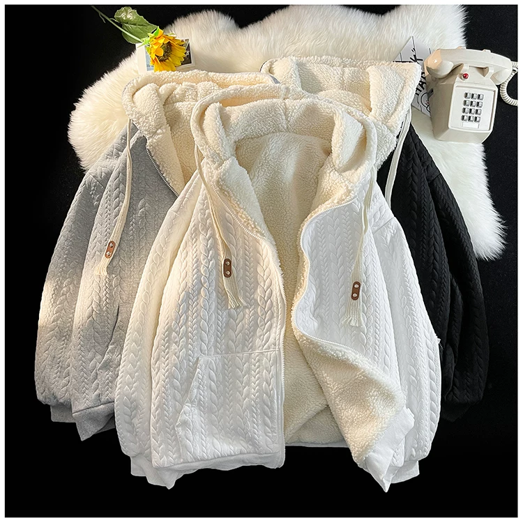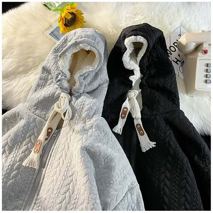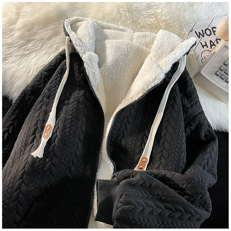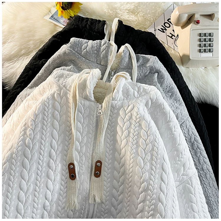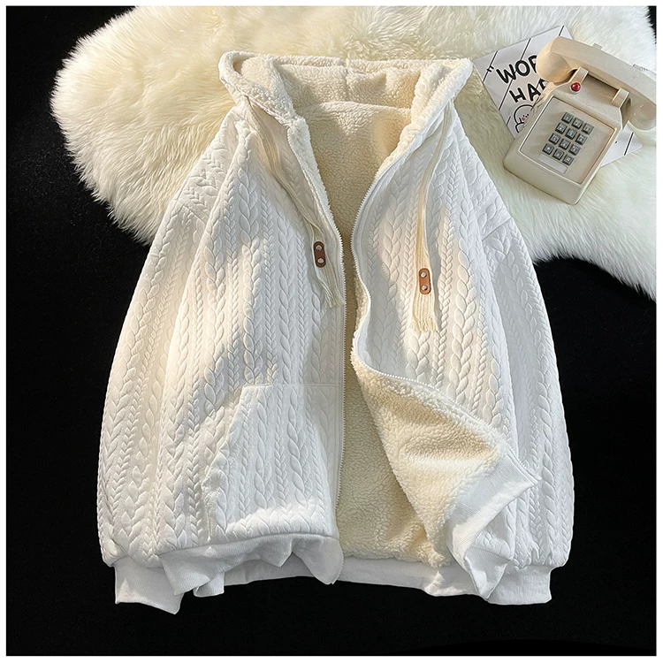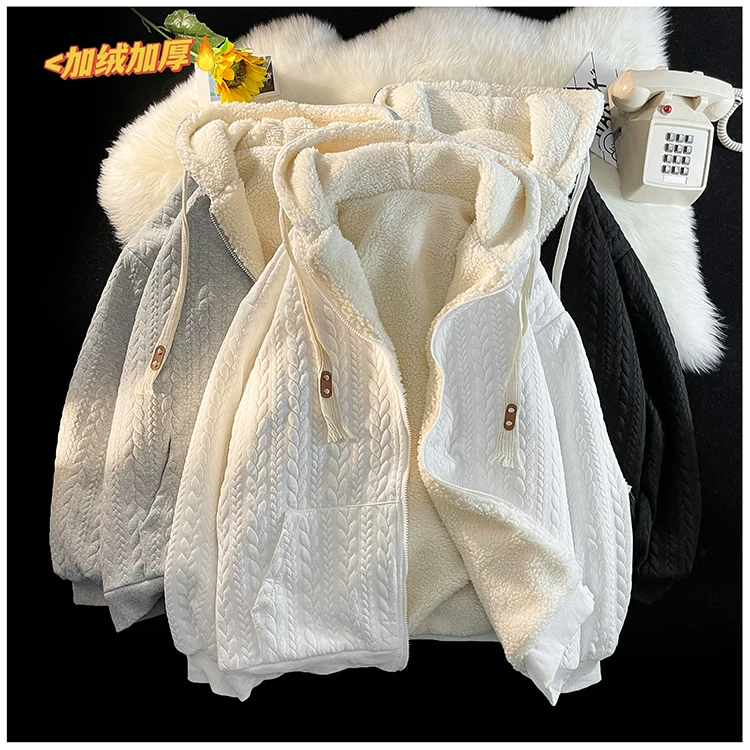 - Áo khoác nỉ dày dặn mùa thu đông mới dành cho nam, kiểu cardigan Mỹ phong cách ins có mũ, áo khoác cặp đôi rộng rãi, chất liệu nặng.