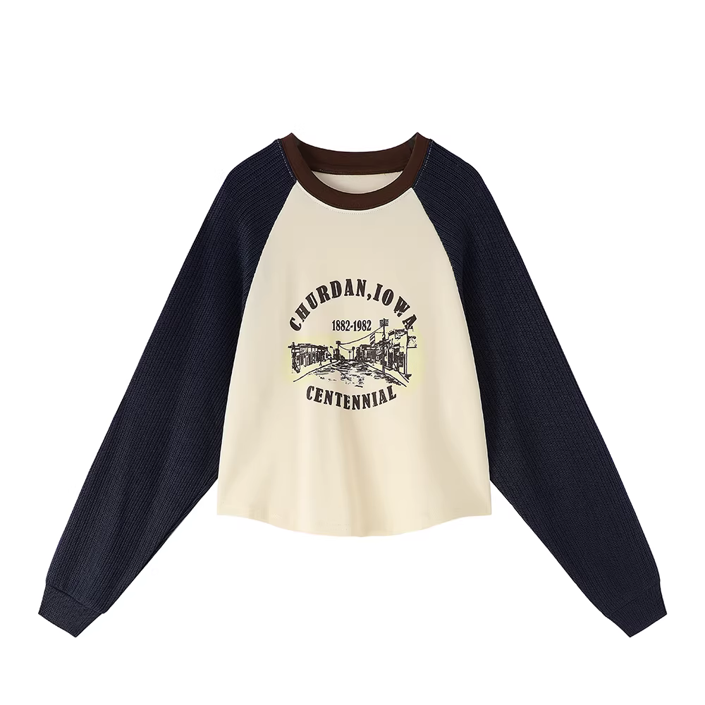 - Áo khoác nỉ nữ kiểu Mỹ cổ điển, tay dài, phối nhiều mảnh, mùa xuân thu 2025, thiết kế độc đáo, đang thịnh hành