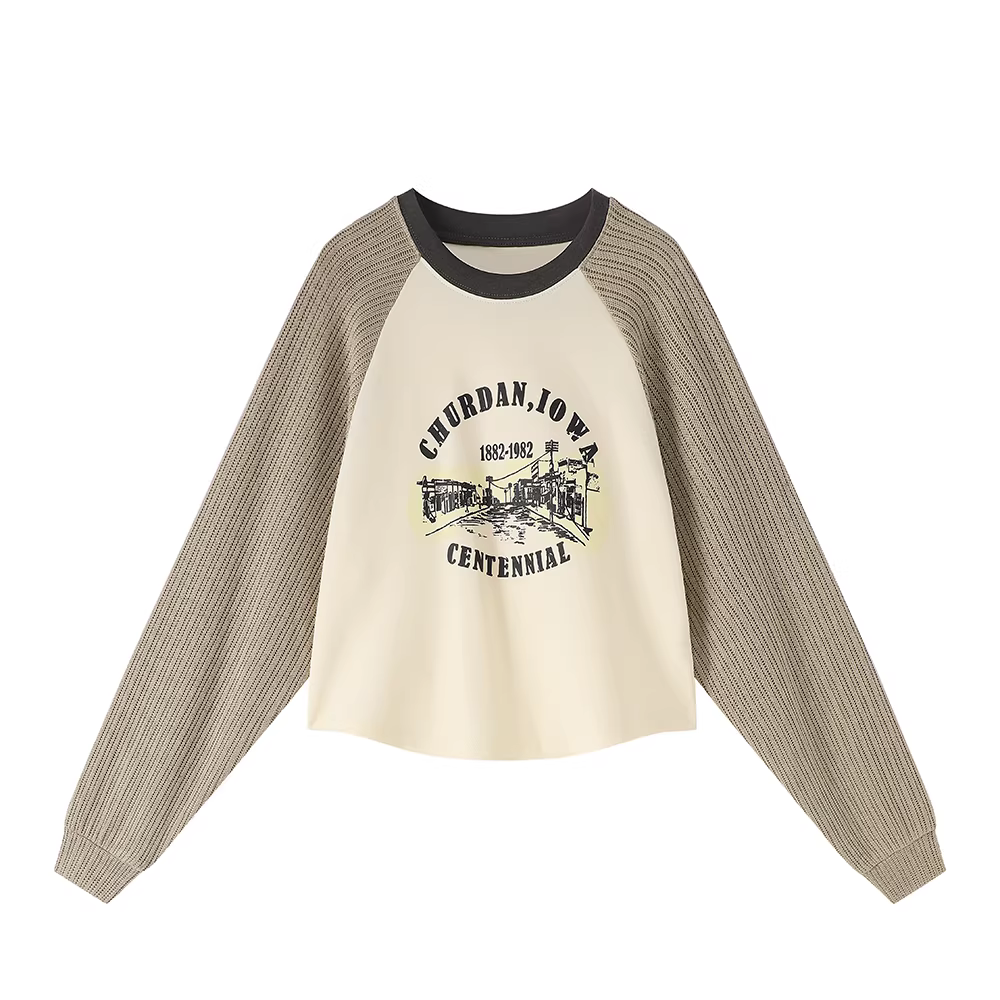 Áo khoác nỉ nữ kiểu Mỹ cổ điển, tay dài, phối nhiều mảnh, mùa xuân thu 2025, thiết kế độc đáo, đang thịnh hành