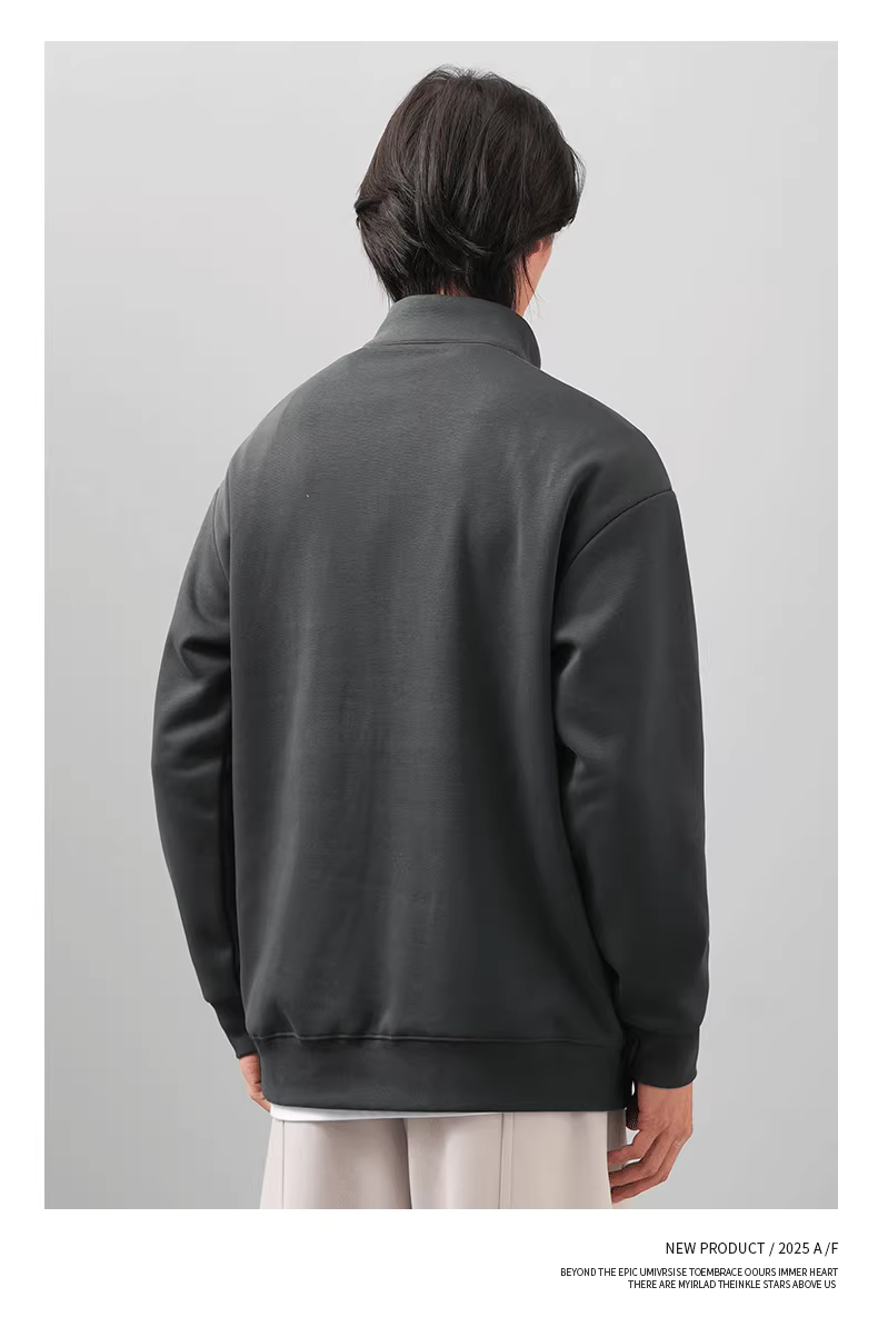 Áo khoác nửa khóa kéo lót lông cừu hạng nặng dành cho nam, thêu chữ theo phong cách Mỹ mùa đông, dày dặn, ấm áp, áo khoác cổ đứng rộng rãi.