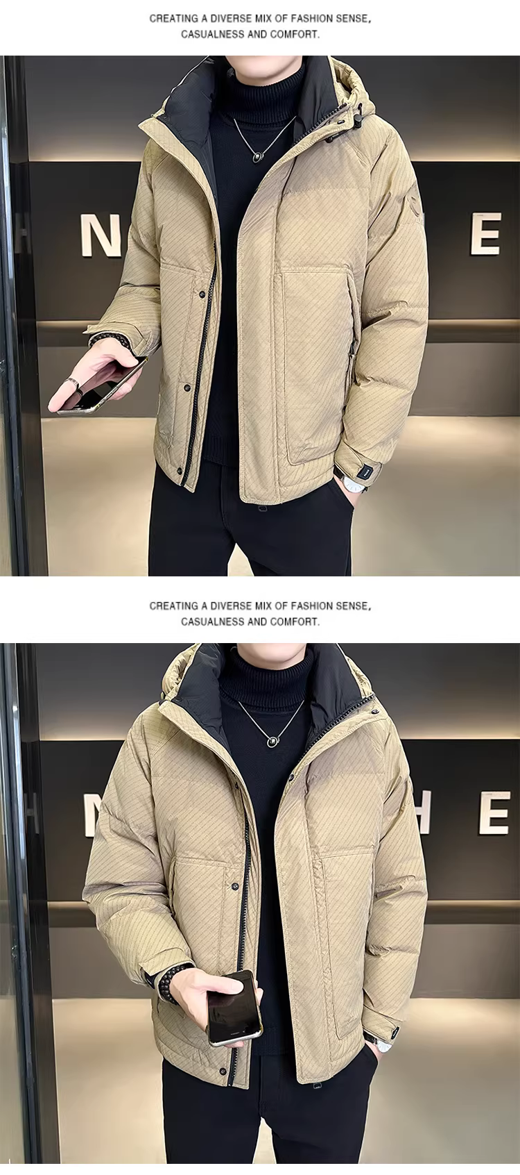- Áo khoác phao in cao cấp dành cho nam, áo khoác ngắn có mũ, mẫu mới mùa đông 2025, chất lượng cao, nhẹ, ấm và chống lạnh
