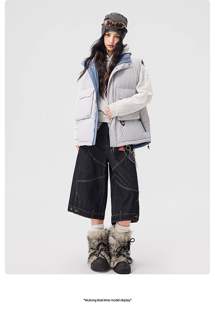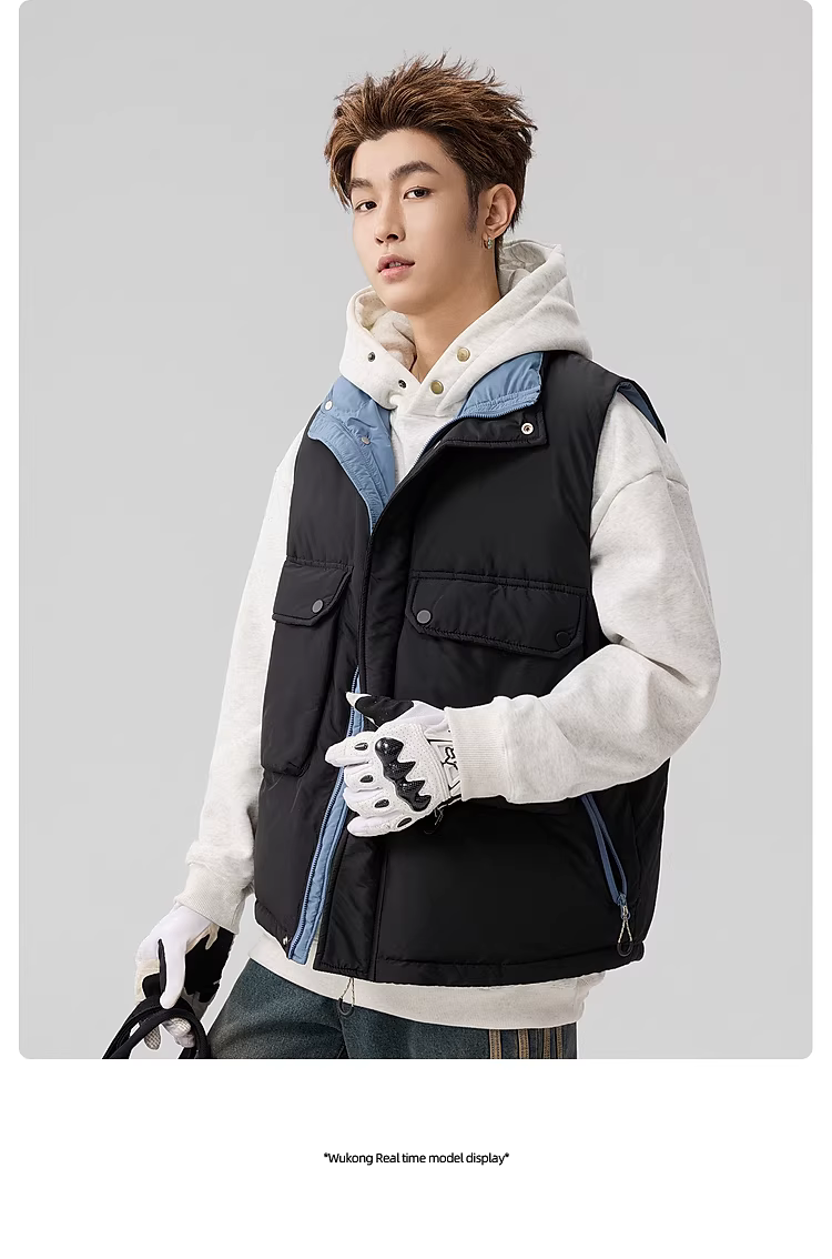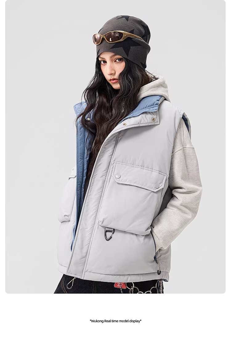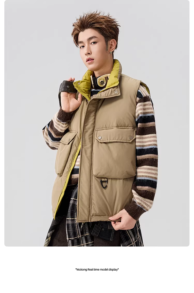 Áo khoác phao không tay mùa đông 90% lông vũ, túi lớn, dành cho nam và nữ, kiểu dáng thời trang retro, ấm áp, đa năng của Ngộ Không.
