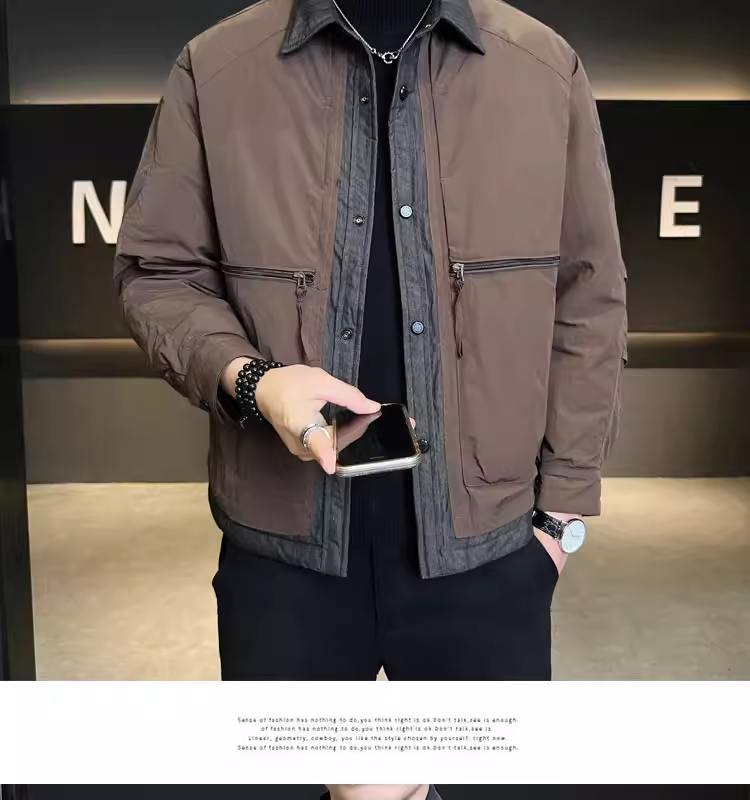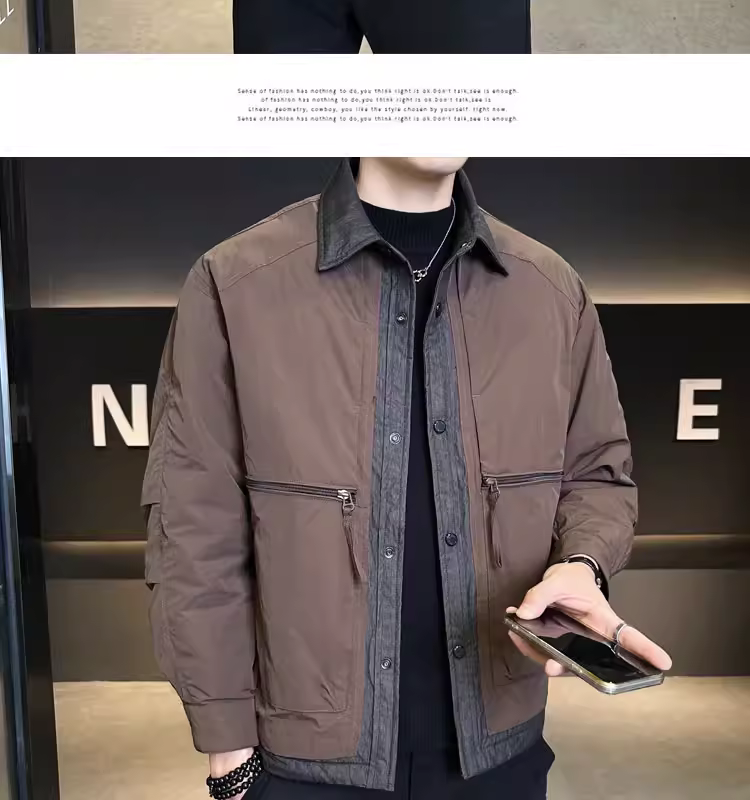 - Áo khoác phao nhẹ dáng ngắn phối vải, dành cho nam, mùa đông 2025, kiểu dáng mới chất lượng cao, ấm áp