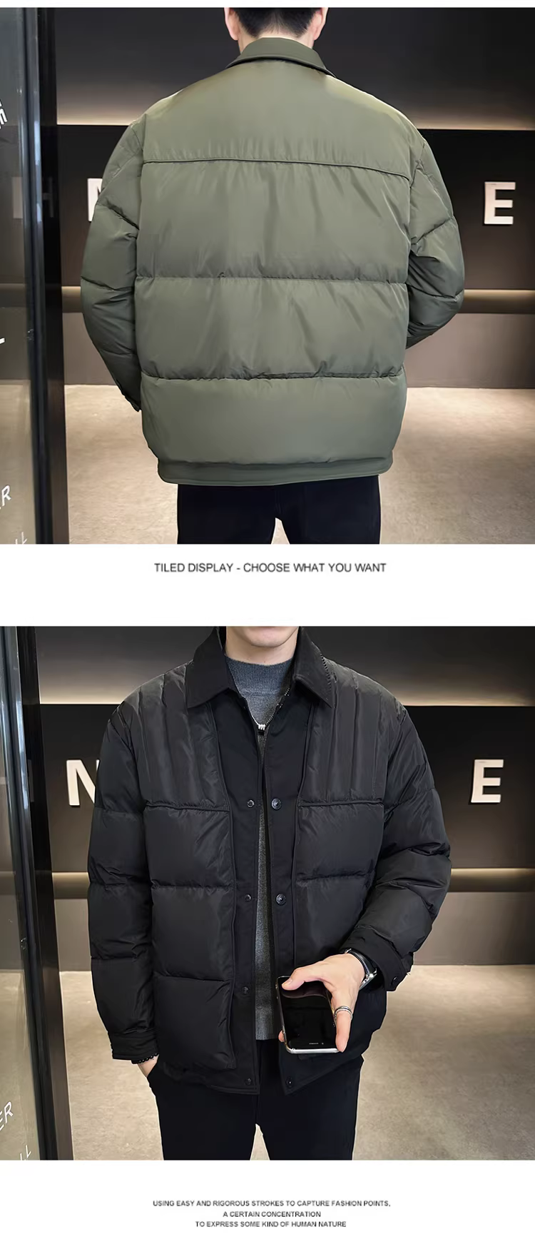- Áo khoác phao nhẹ phối viền cho nam, kiểu mới mùa đông 2025, đa năng và thời trang, áo khoác ngắn chất lượng cao.