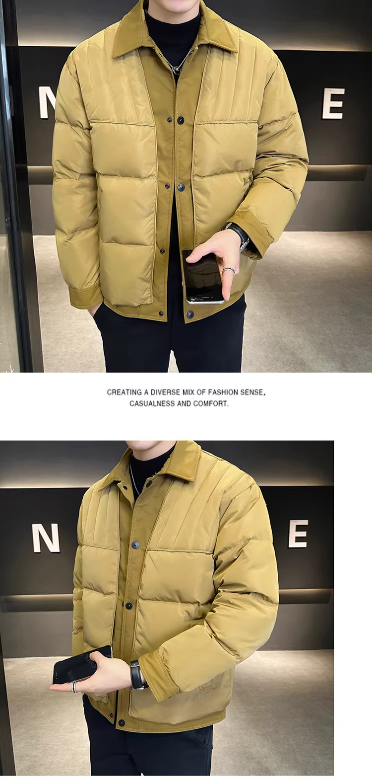 Áo khoác phao nhẹ phối viền cho nam, kiểu mới mùa đông 2025, đa năng và thời trang, áo khoác ngắn chất lượng cao.