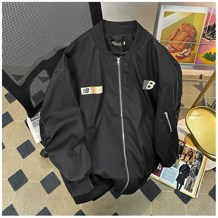 - Áo khoác phi công phong cách Mỹ mùa đông dành cho nam, thương hiệu thời thượng, áo khoác cotton bóng chày thêu dày, áo khoác cotton cặp đôi dáng rộng.