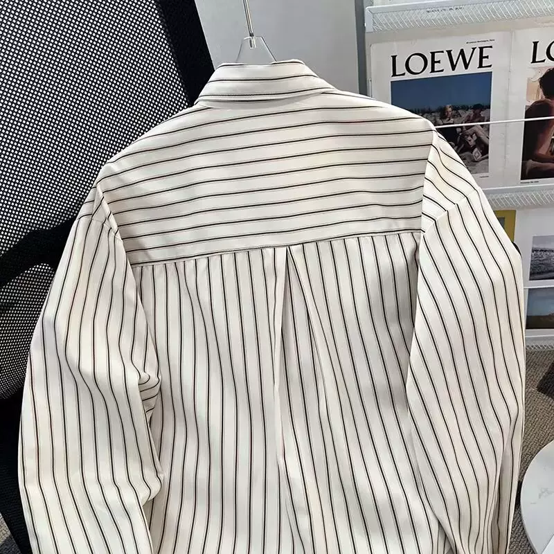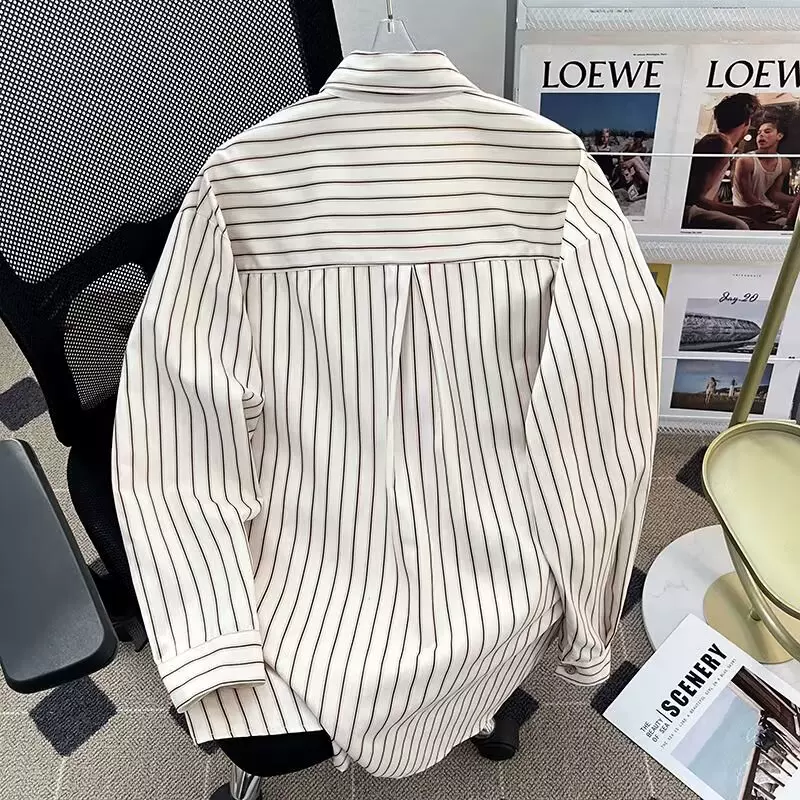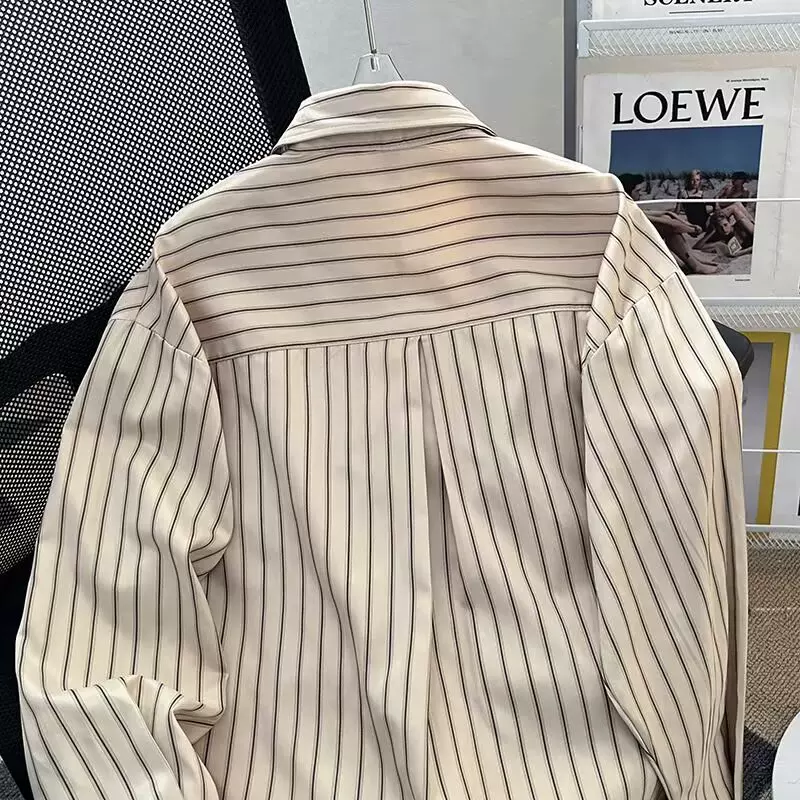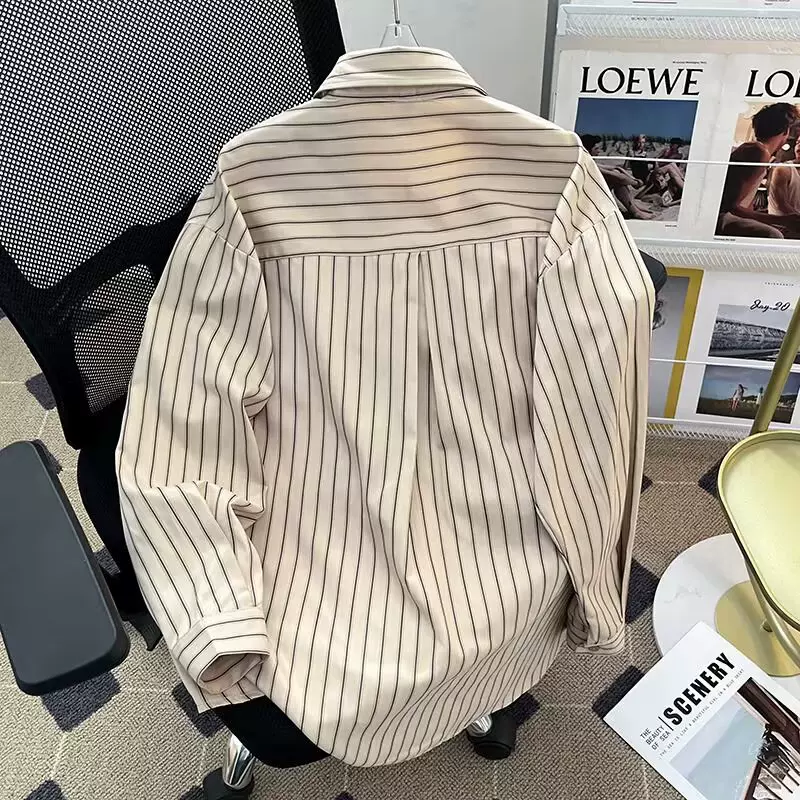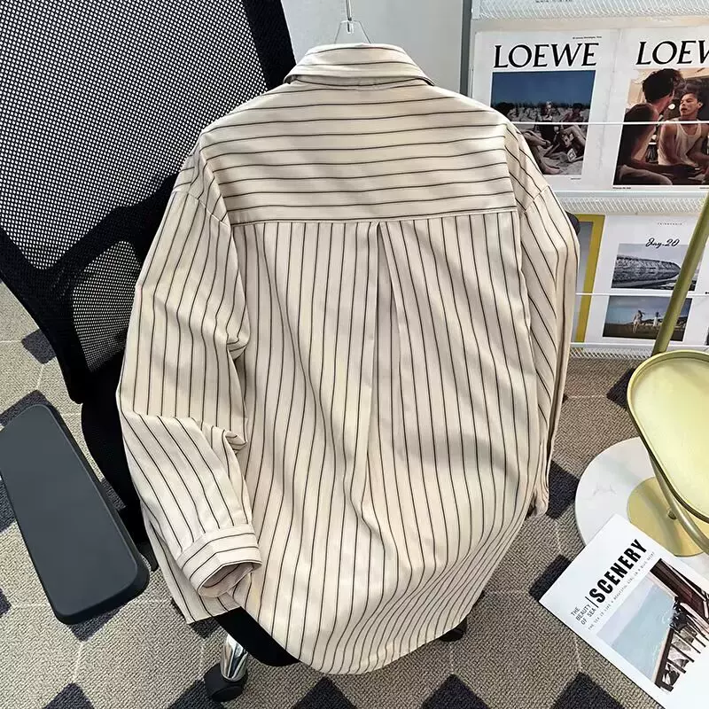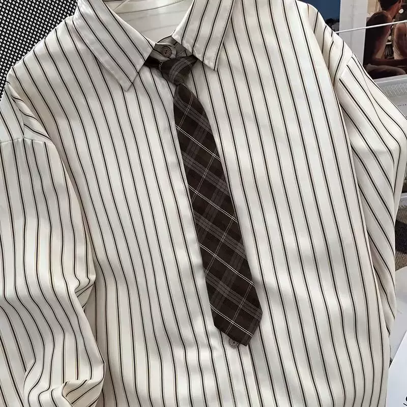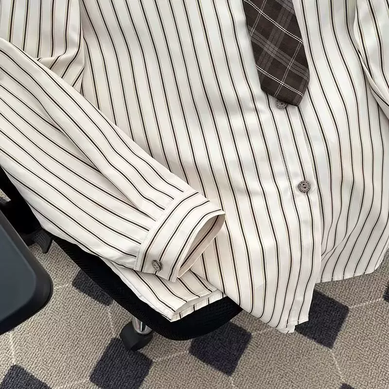 - Áo khoác sơ mi sọc cổ điển Nhật Bản dành cho nam, dáng rộng, áo sơ mi dài tay sành điệu có cà vạt, thiết kế xuân thu.