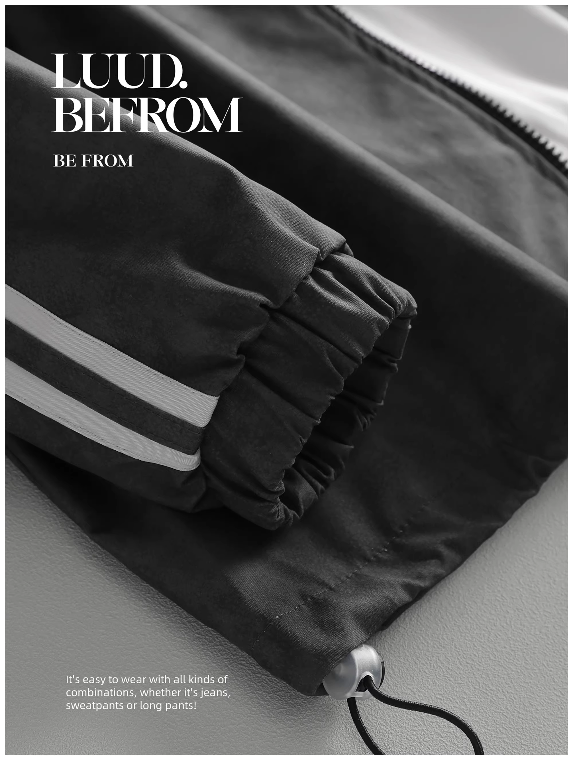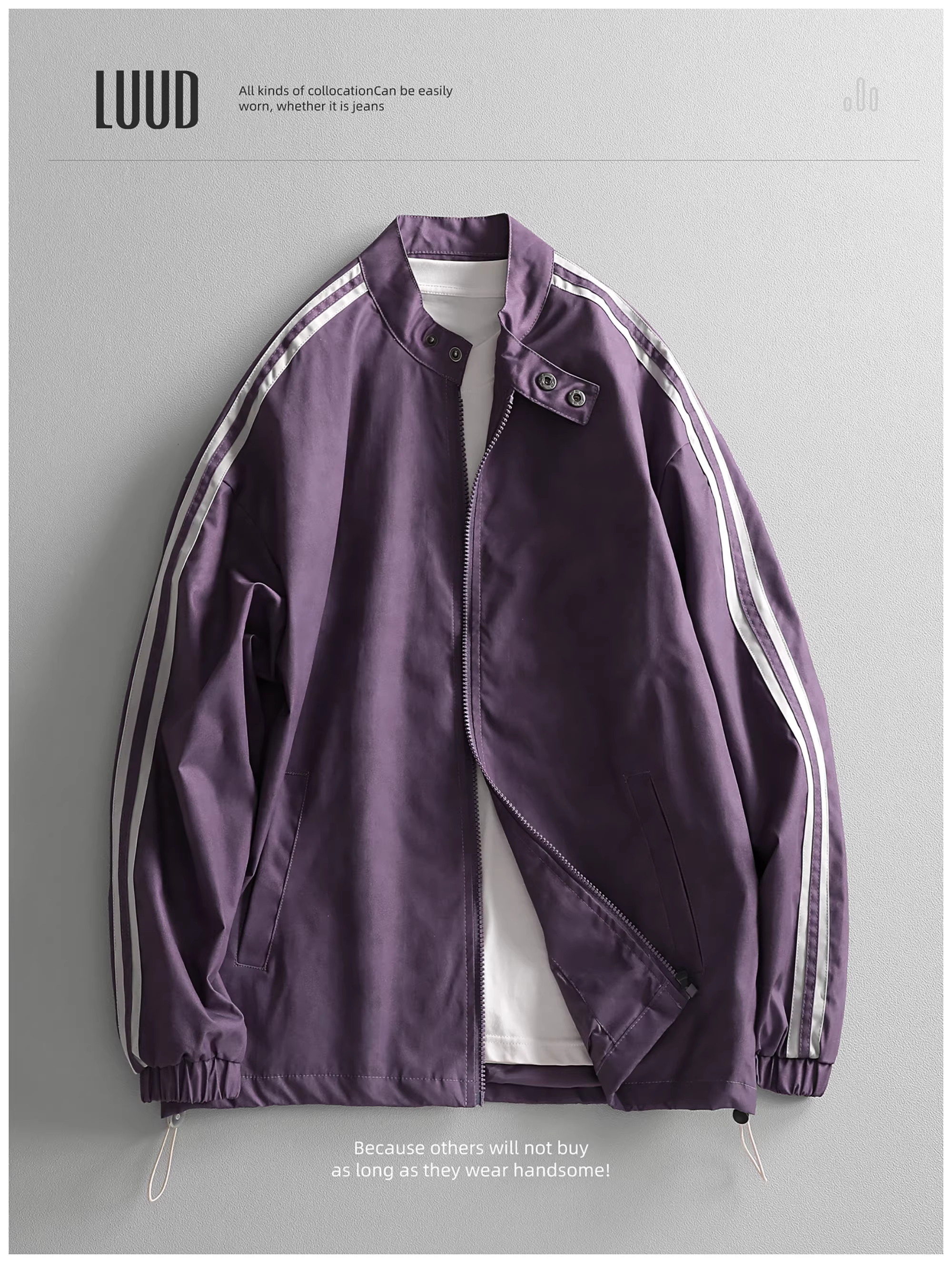 - Áo khoác thể thao ba sọc thiết kế LUUD, áo khoác nam cổ điển hoài cổ, áo khoác phi công cổ đứng, kiểu dáng giản dị