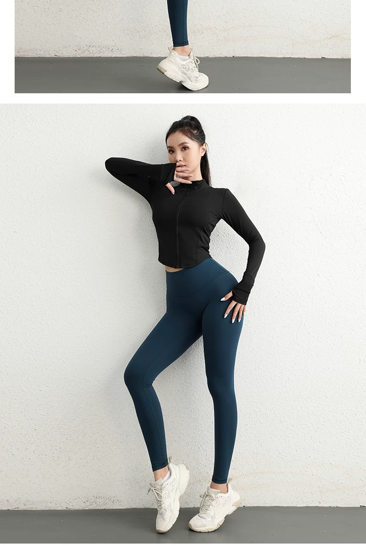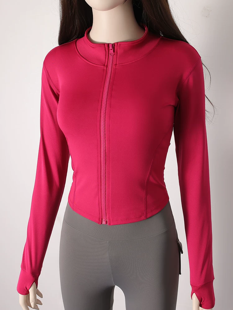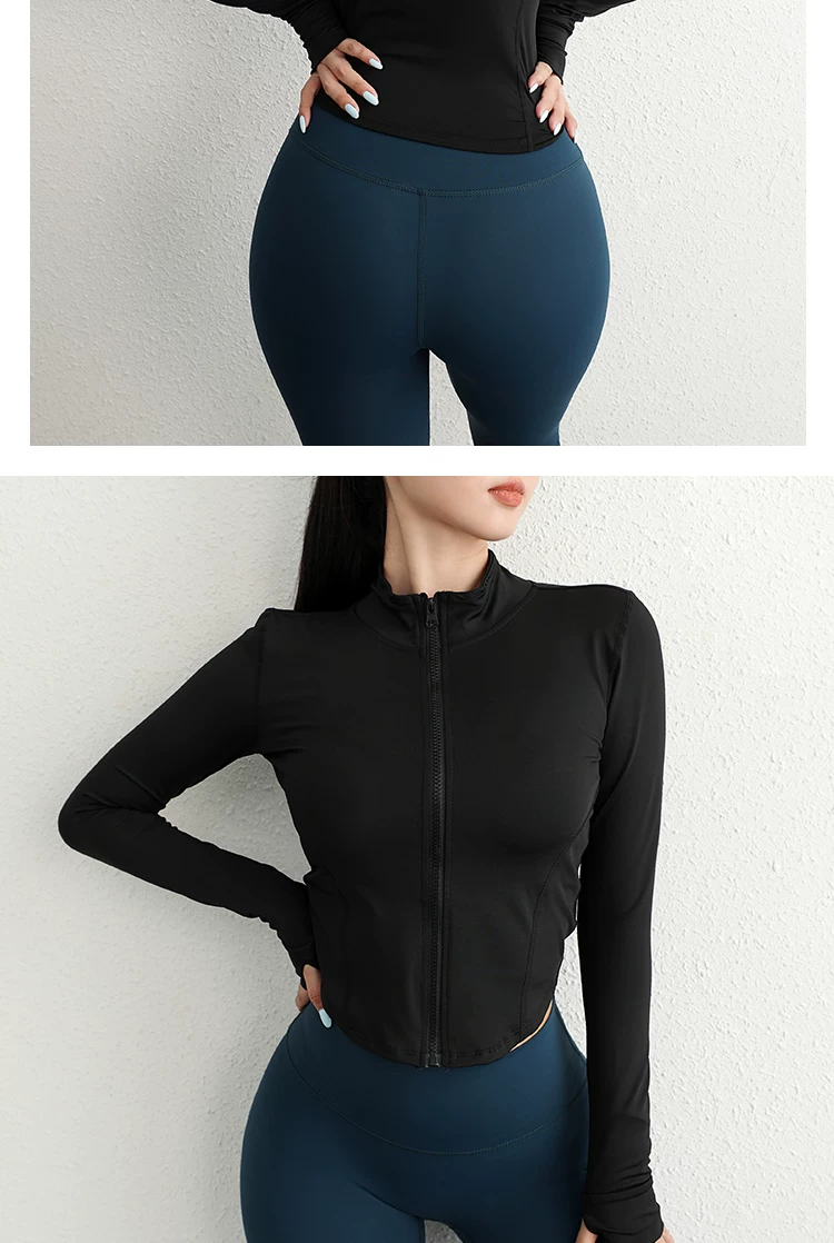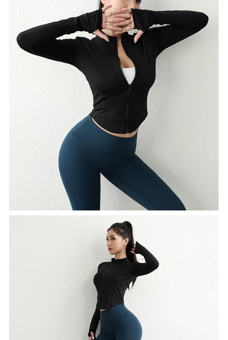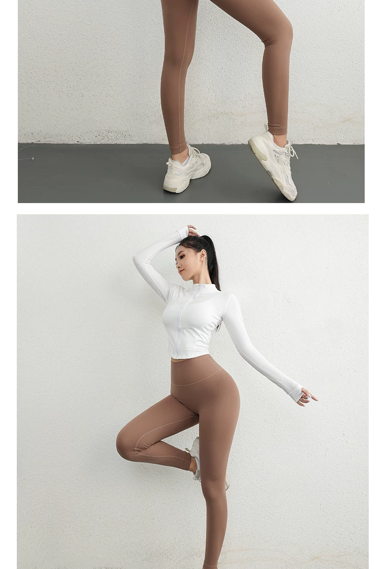 - Áo khoác thể thao cổ đứng dành cho nữ, áo tập gym màu trắng ôm sát, áo yoga dài tay nhanh khô, kiểu dáng ôm sát có khóa kéo.