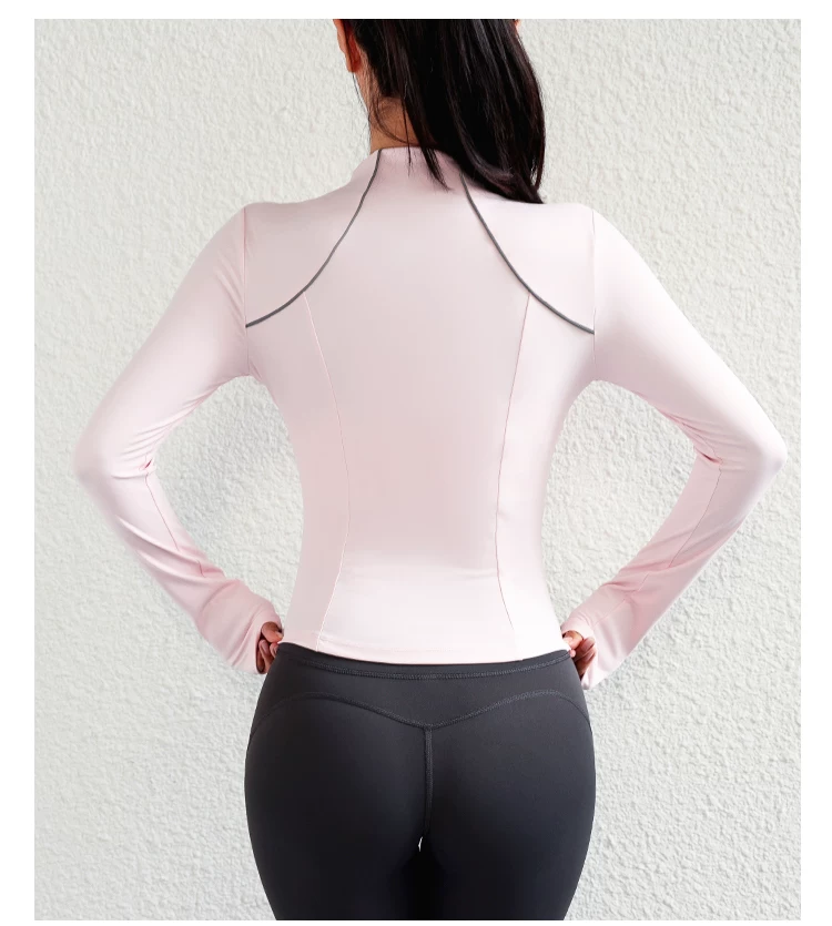 Áo khoác thể thao cổ đứng dành cho nữ, dáng ôm, trang phục tập thể dục đa năng, áo tập yoga dài tay co giãn bó sát, phong cách thu đông.