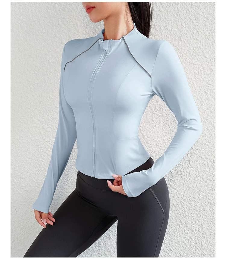 - Áo khoác thể thao cổ đứng dành cho nữ, dáng ôm, trang phục tập thể dục đa năng, áo tập yoga dài tay co giãn bó sát, phong cách thu đông.