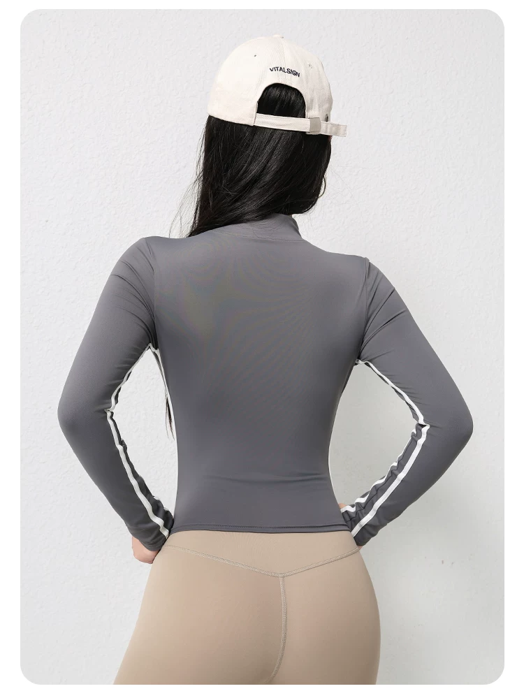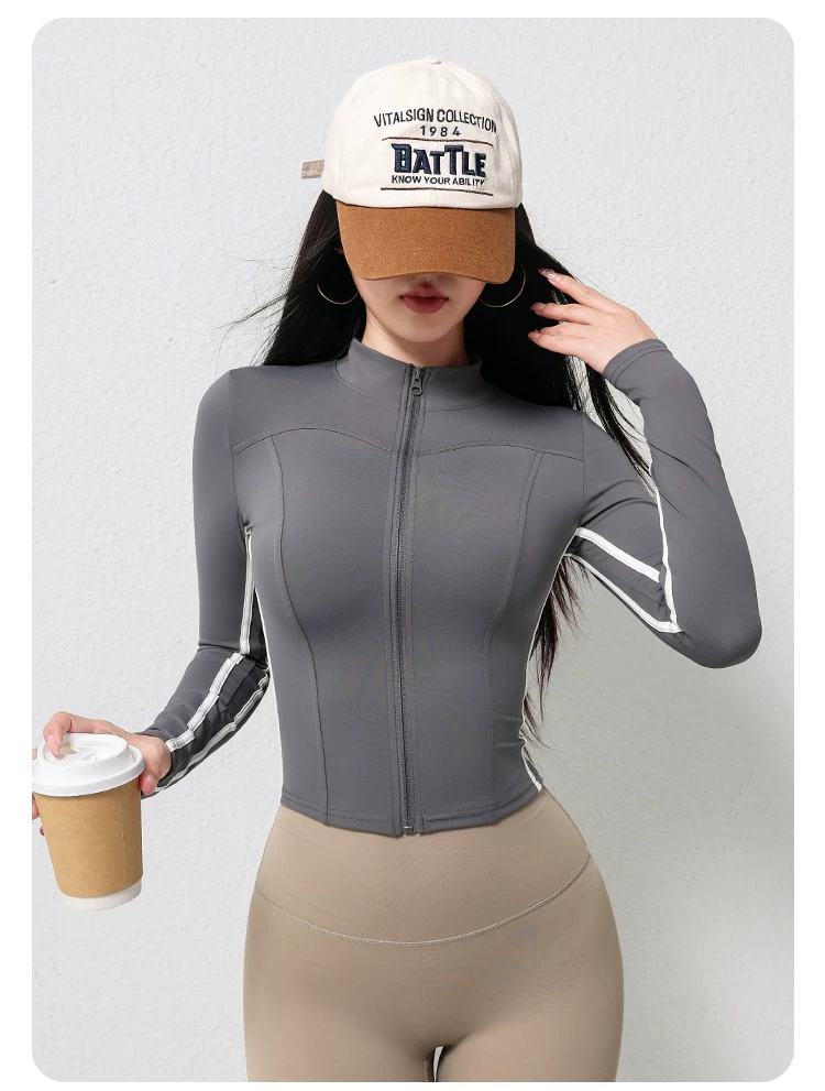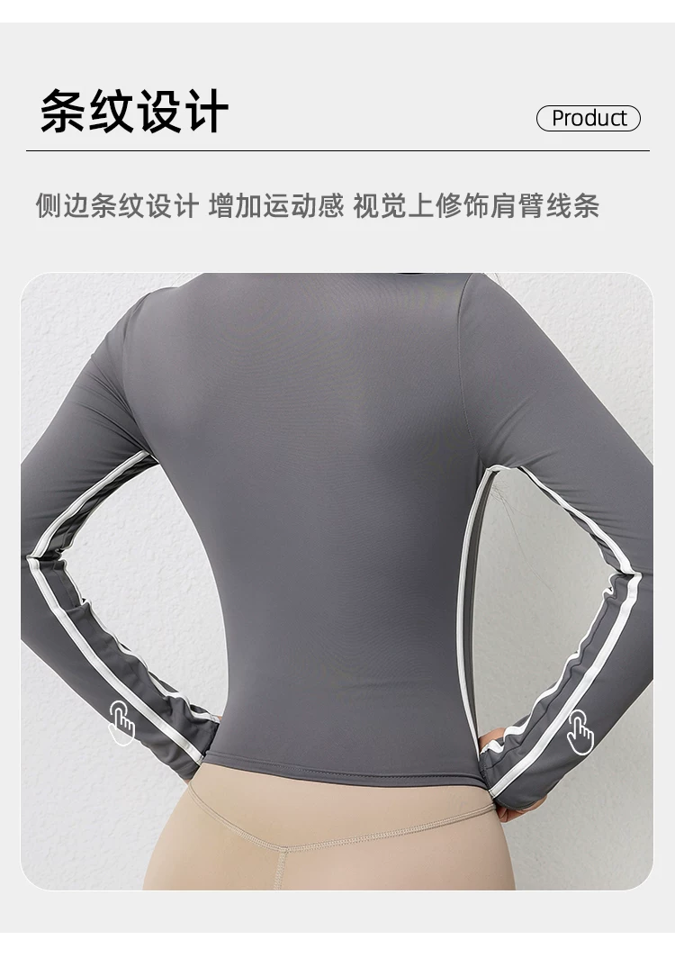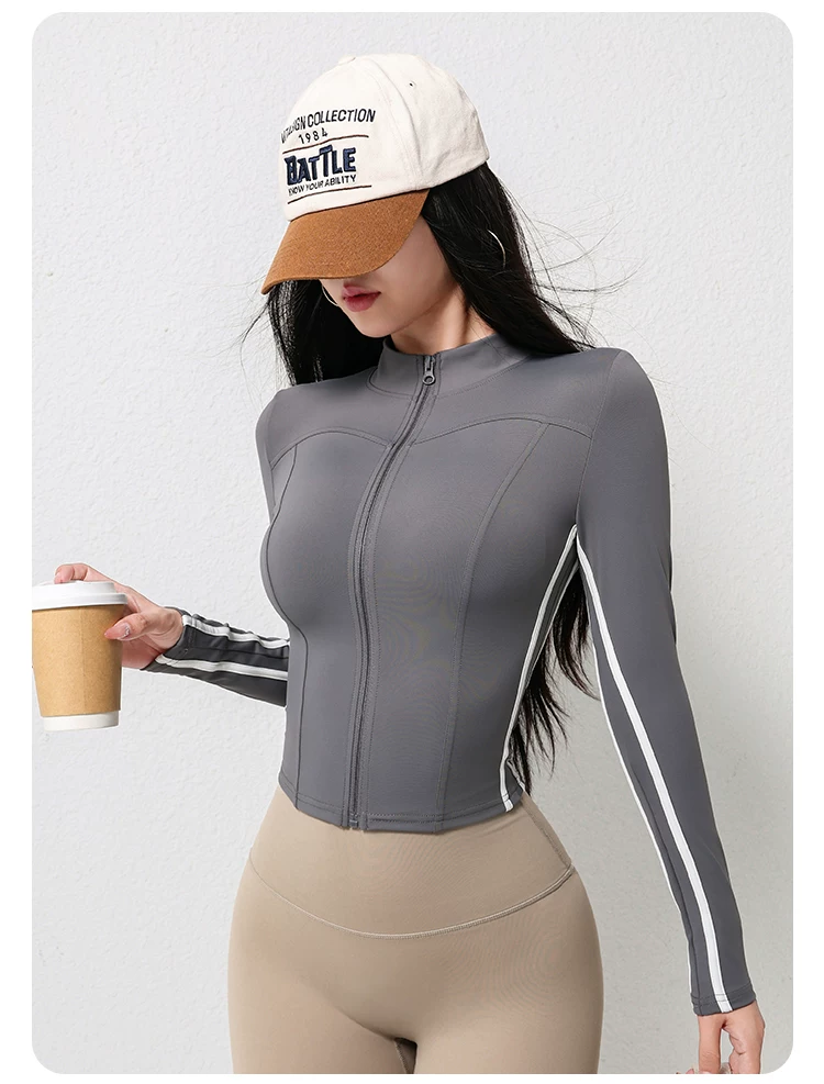 Áo khoác thể thao Jiumai Yipin co giãn cao, thoáng khí, mặc tập yoga, sọc cổ điển, tập chạy bộ, tập thể dục, dài tay dành cho nữ mùa thu đông.