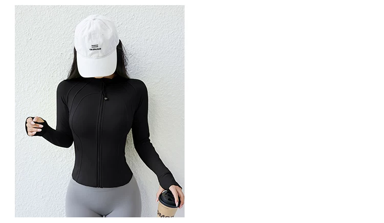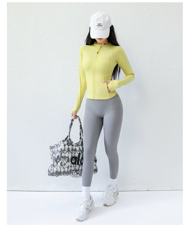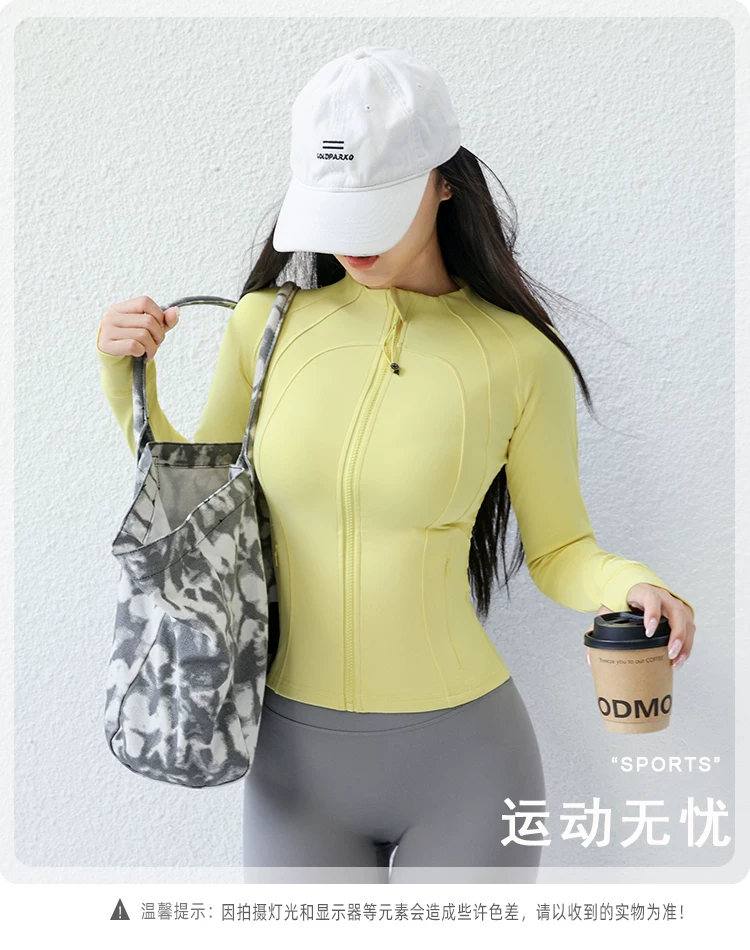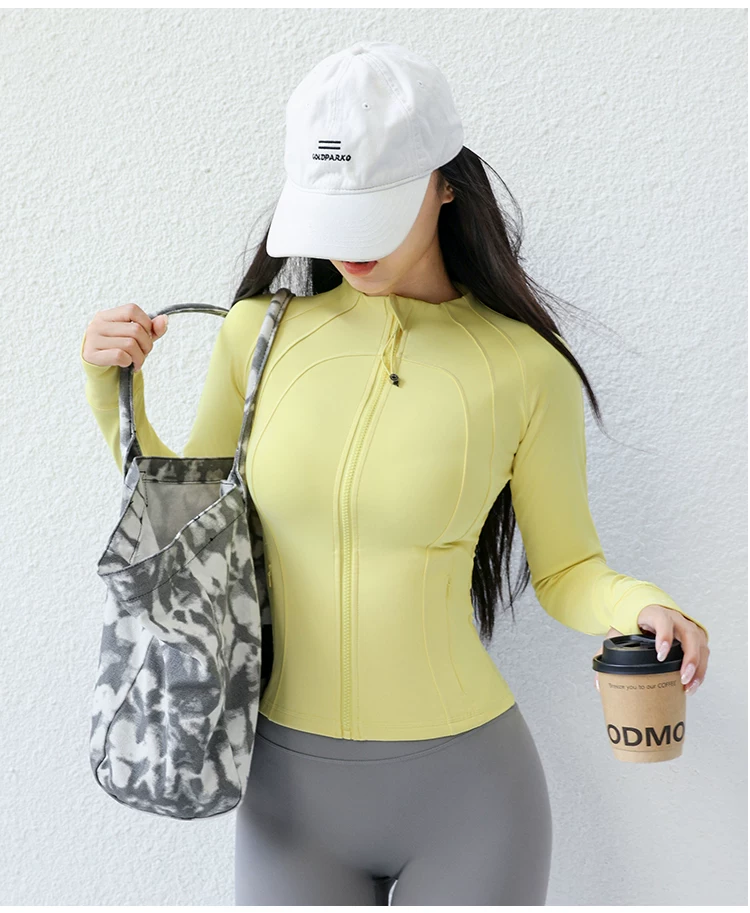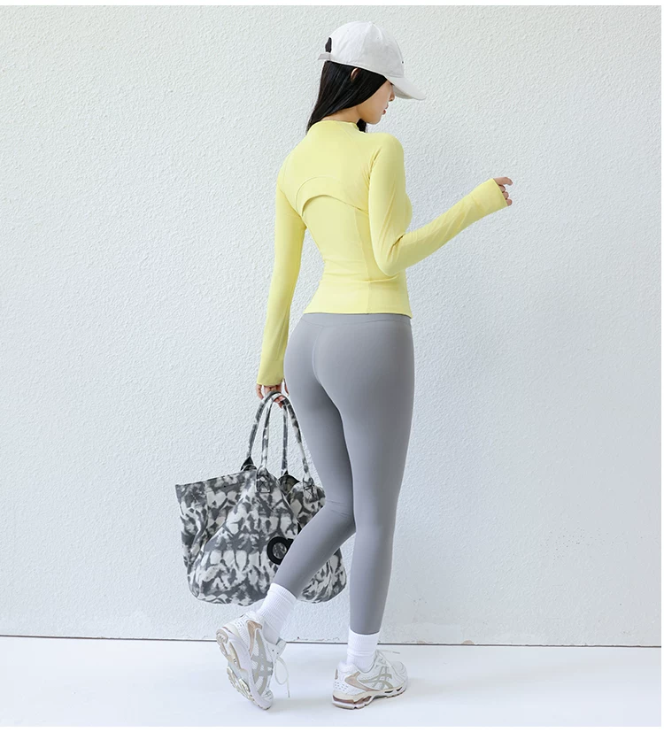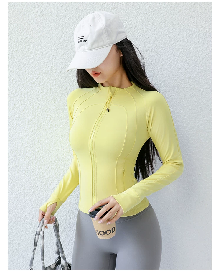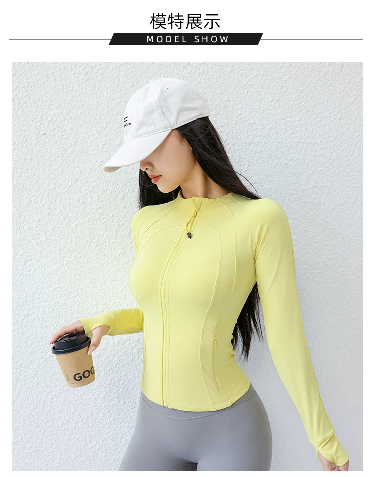 Áo khoác thể thao Jiumai Yipin dành cho nữ, tay dài, trang phục tập yoga ôm sát, phong cách xuân thu mới, áo tập thể dục ôm eo.