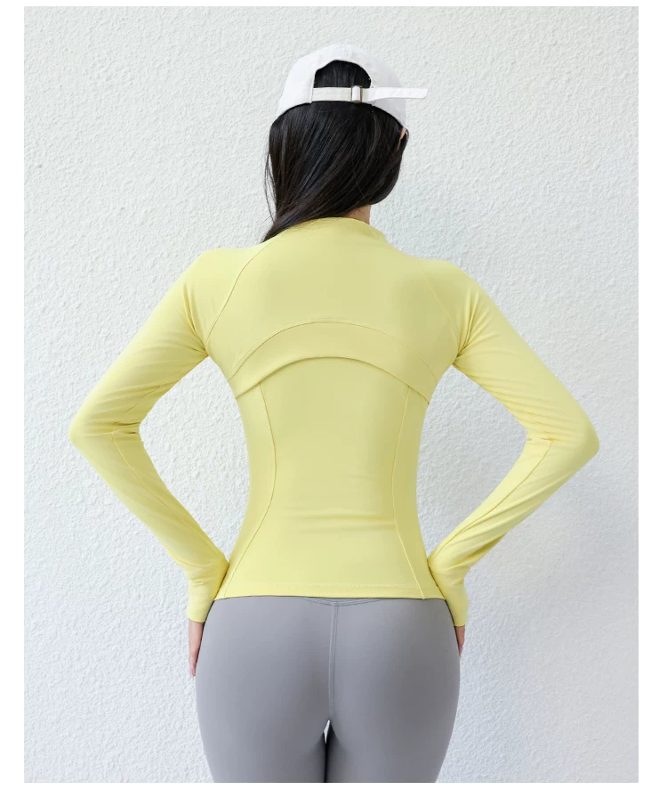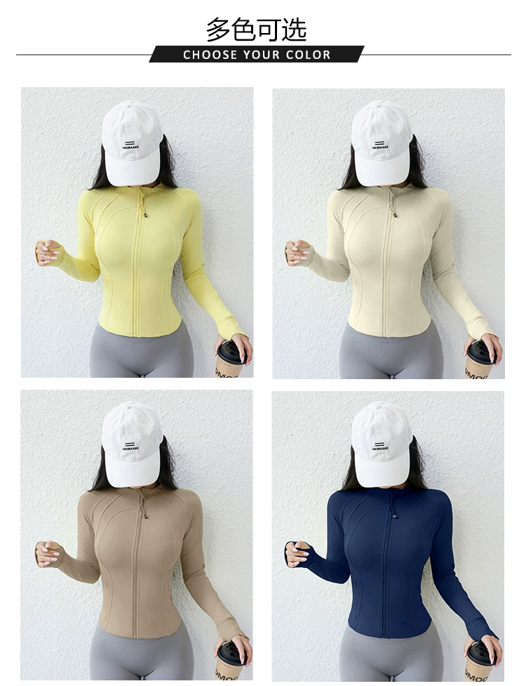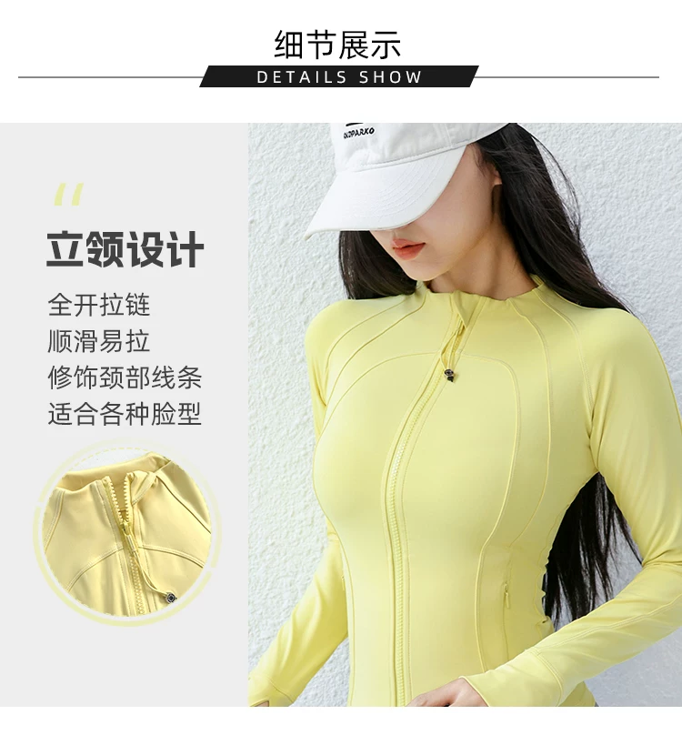 - Áo khoác thể thao Jiumai Yipin dành cho nữ, tay dài, trang phục tập yoga ôm sát, phong cách xuân thu mới, áo tập thể dục ôm eo.