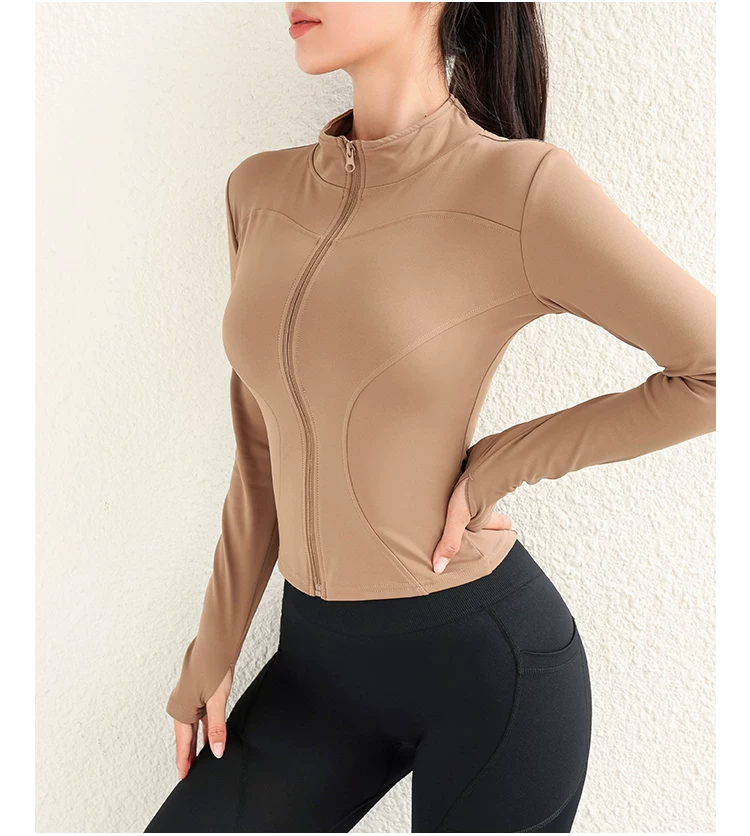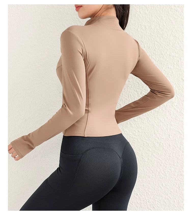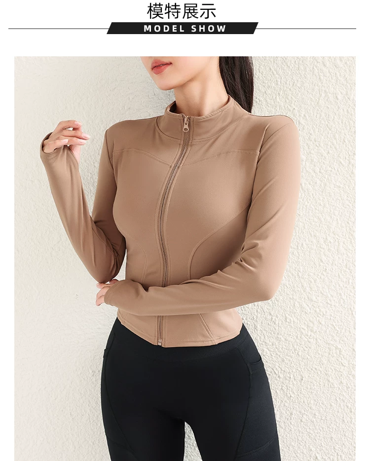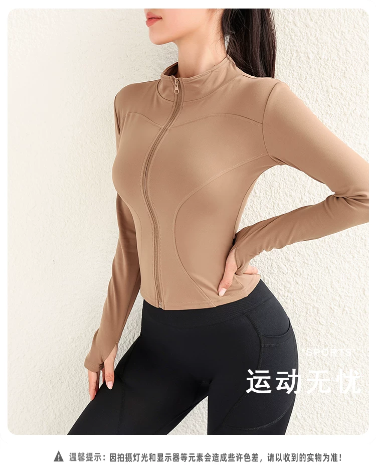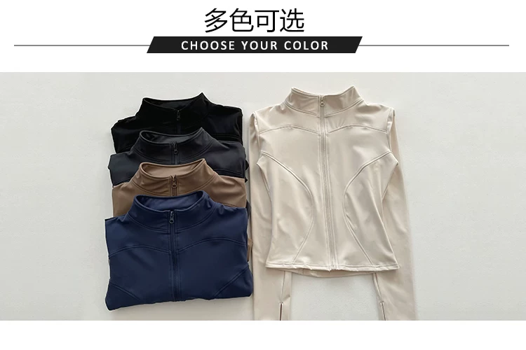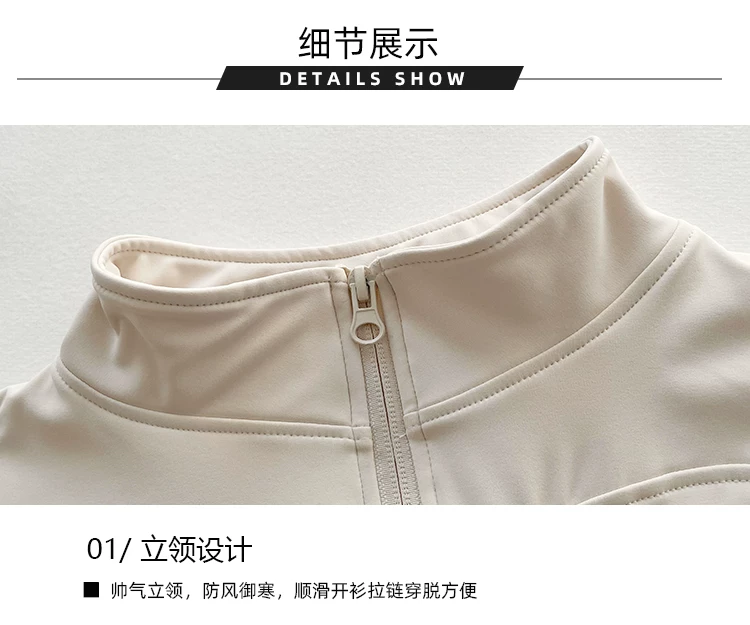 Áo khoác thể thao lót lông cừu, áo cổ đứng ôm sát, áo tập luyện thể thao chất liệu lông cừu mỏng dày dặn, áo dài tay nhanh khô mùa thu đông.